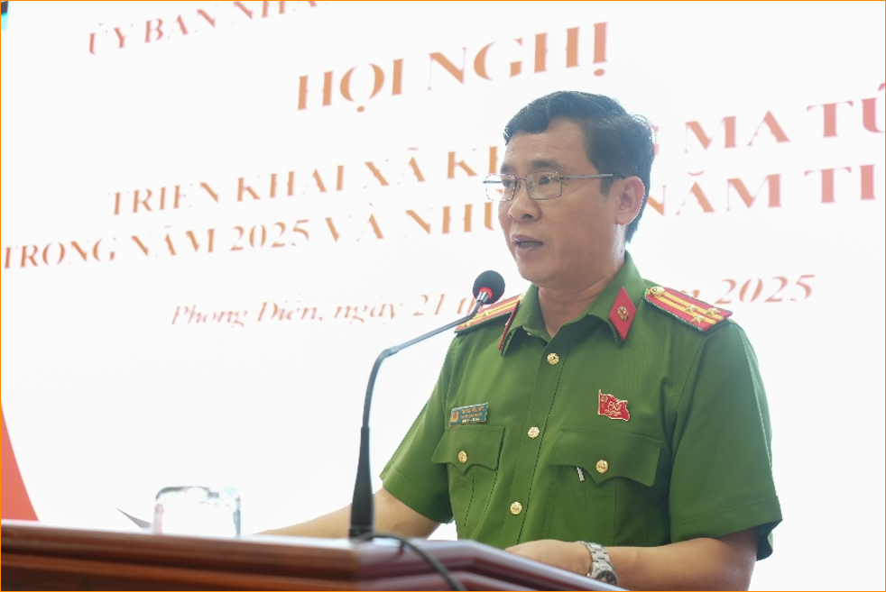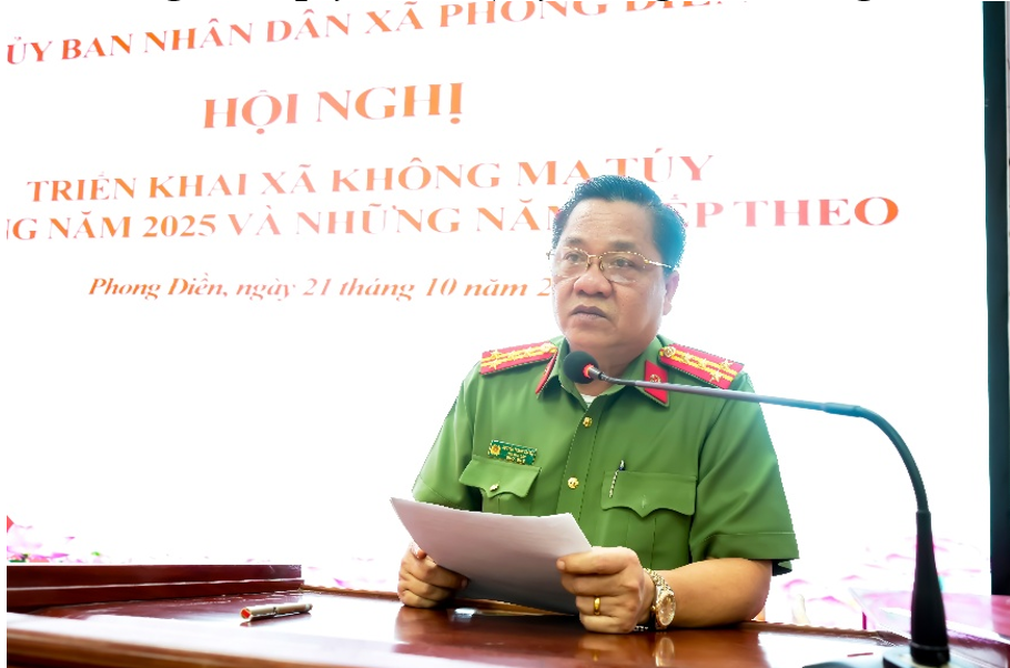 Chiều ngày 21/10, Công an xã Phong Điền, thành phố Cần Thơ tham mưu Uỷ ban nhân dân xã tổ chức hội nghị triển khai Kế hoạch xây dựng địa bàn xã không ma tuý năm 2025 và những năm tiếp theo trên địa bàn xã Phong Điền. Đại tá Nguyễn Thanh Tràng, Thành uỷ viên, Phó Bí thư Đảng uỷ, Phó Giám đốc Công an thành phố Cần Thơ dự và phát biểu chỉ đạo. Cùng dự có đại diện lãnh đạo một số đơn vị nghiệp vụ thuộc Công an thành phố; đại diện lãnh đạo Đảng ủy, Ủy ban nhân dân và Công an xã Phong Điền.