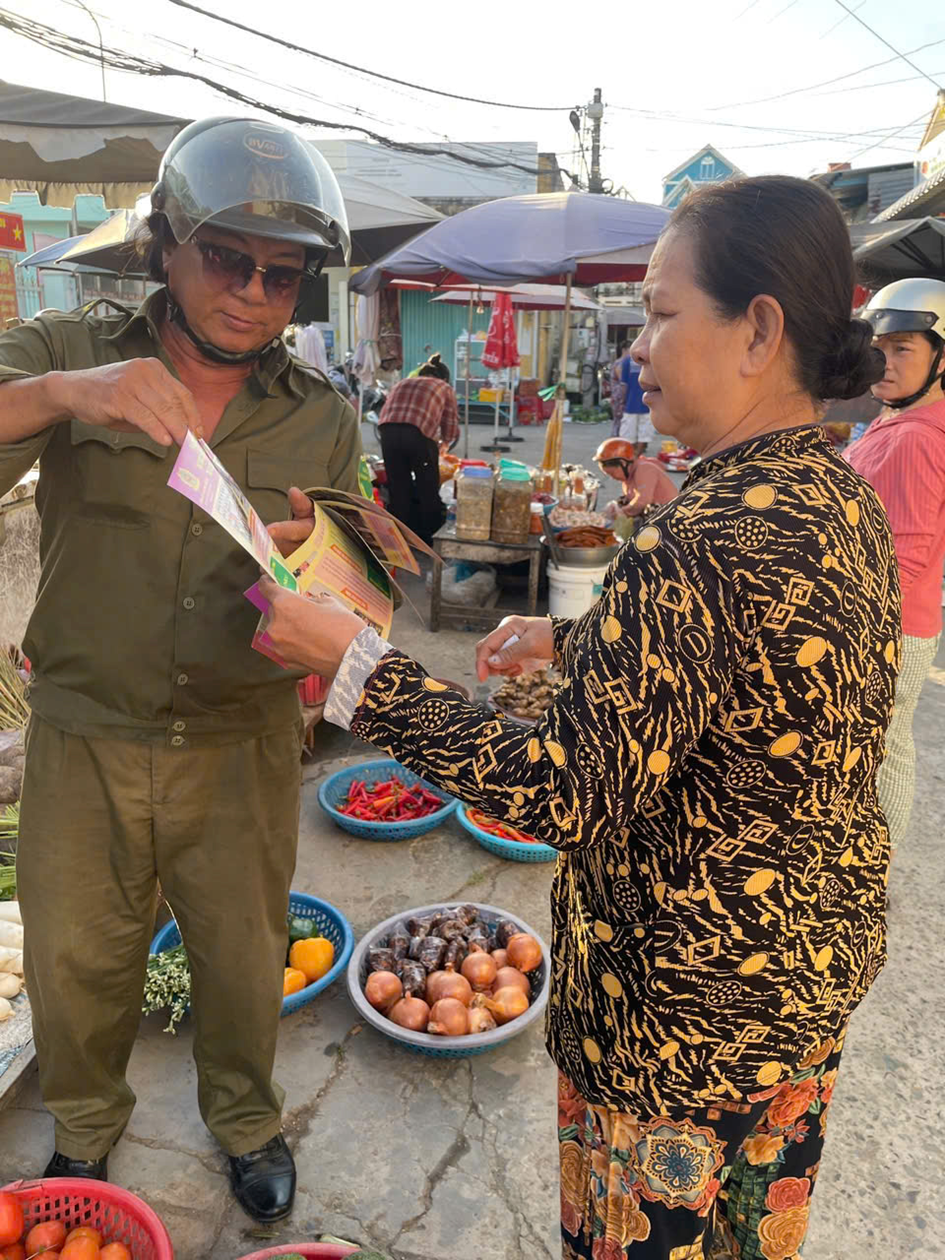 Lực lượng ANTT cơ sở tổ chức các hoạt động phát tờ rơi kết hợp phát loa tuyên truyền pháp luật, phòng chống cháy nổ đến người dân trên địa bàn
