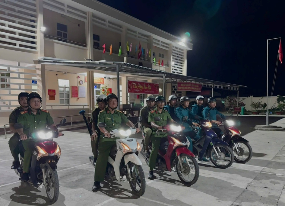 Cán bộ, chiến sĩ Công an xã phối hợp cùng Ban chỉ huy quân sự xã tổ chức tuần tra, kiểm soát, khép chặt địa bàn đảm bảo ANTT cho bà con vui xuân đón Tết