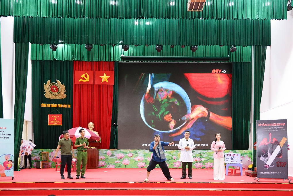 Phát biểu khai mạc, Đại tá Huỳnh Hoài Hận, Ủy viên Ban Thường vụ Đảng ủy, Phó Giám đốc Công an thành phố nhấn mạnh: Hội thi “Tìm hiểu, sáng kiến phòng, chống tác hại thuốc lá” không chỉ nhằm mục đích tuyên truyền, vận động, tư vấn về tác hại của việc hút thuốc lá để mỗi cán bộ, đoàn viên thanh niên nhận thức sâu sắc, mà qua đó, nêu cao tinh thần trách nhiệm vận động người thân, đồng chí, đồng đội tìm hiểu và thực hiện tốt Luật phòng, chống tác hại thuốc lá và các văn bản hiện hành; có ý thức hơn trong việc xây dựng môi trường làm việc và sinh hoạt an toàn, không thuốc lá. Hội thi diễn ra sôi nổi với ba phần thi chính: Phần thi kiến thức, phần thi xử lý tình huống và phần thi năng khiếu. Các đội thi đã thể hiện sự am hiểu về Luật Phòng, chống tác hại thuốc lá, quy định pháp luật về khu vực cấm hút thuốc, nhận diện các loại thuốc lá mới và tác hại của việc hút thuốc lá chủ động - thụ động; thể hiện tiểu phẩm, hát, múa, thơ ca, hùng biện, kịch ngắn hoặc các tiết mục tuyên truyền sáng tạo, truyền tải thông điệp “Nói không với thuốc lá” bằng hình thức nghệ thuật gần gũi, dễ nhớ, dễ lan tỏa. Qua đó, thể hiện bản lĩnh, kỹ năng tuyên truyền và giải quyết vấn đề một cách khéo léo, thuyết phục, góp phần lan tỏa thông điệp “Sống khỏe - không khói thuốc”.