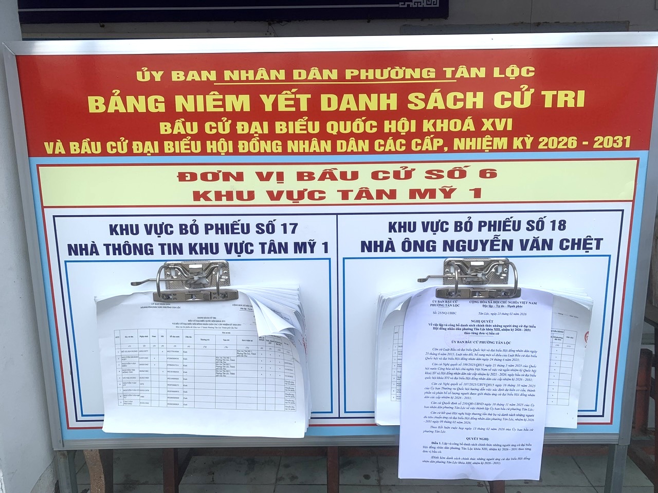 Bảng niêm yết danh sách cử tri Bầu cử Đại biểu Quốc Hội khóa XVI và bầu cử Đại biểu Hội đồng nhân dân các cấp nhiệm kỳ 2026 - 2031 tại đơn vị Bầu cử số 6