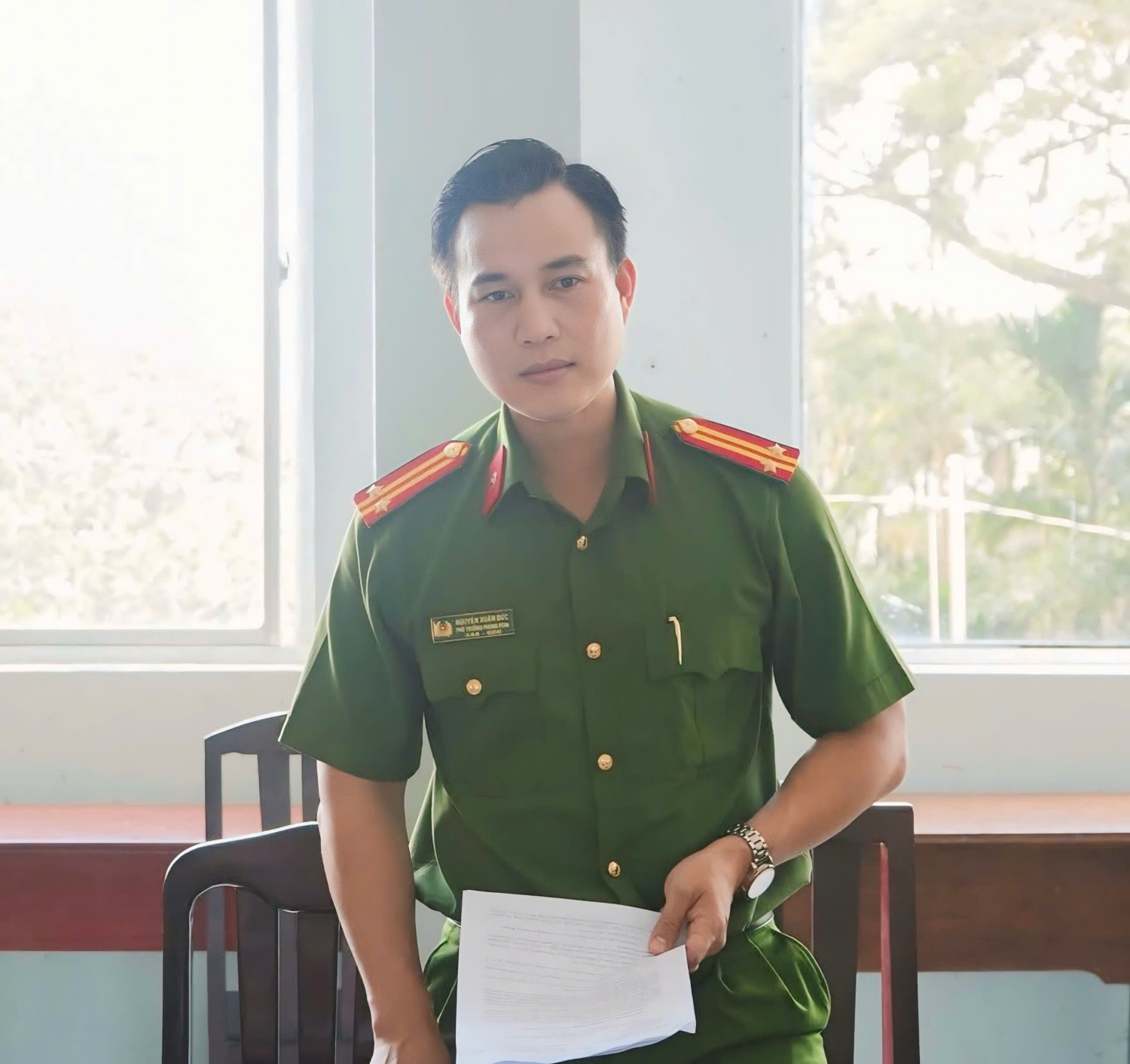 Đồng chí Trung tá Nguyễn Xuân Đức - Phó Trưởng phòng Cảnh sát quản lý hành chính về trật tự xã hội phát biểu chỉ đạo tại Công an xã Phú Hữu