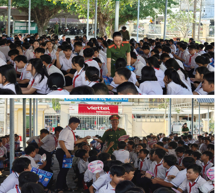 Bên cạnh đó, sự phối hợp chặt chẽ, tích cực từ Ban Giám hiệu và đội ngũ giáo viên các nhà trường đã góp phần quan trọng vào thành công chung của chương trình. Công tác chuẩn bị được thực hiện chu đáo, tạo điều kiện thuận lợi để buổi tuyên truyền diễn ra đúng kế hoạch, đảm bảo nội dung và thu hút đông đảo học sinh tham gia. Đáng ghi nhận, các em học sinh thể hiện sự hứng thú, phấn khởi và tinh thần tiếp nhận tích cực đối với các nội dung được truyền đạt. Nhiều em mạnh dạn phát biểu, trao đổi, nêu lên những tình huống thực tế trong cuộc sống học đường, qua đó cho thấy sự quan tâm và ý thức ngày càng cao đối với các vấn đề liên quan đến an ninh, trật tự.