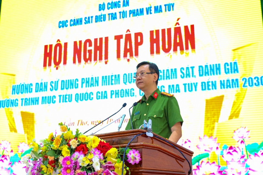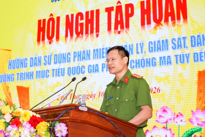 Phát biểu tại Hội nghị, Đại tá Bùi Đức An, Phó Giám đốc Công an thành phố Cần Thơ nhấn mạnh, Công an thành phố Cần Thơ rất vinh dự khi được Bộ Công an lựa chọn là địa điểm tổ chức hội nghị tập huấn lần này; đồng thời khẳng định công tác phòng, chống ma túy luôn được Đảng ủy, Ban Giám đốc Công an thành phố Cần Thơ xác định là nhiệm vụ trọng tâm, thường xuyên, trong đó đặc biệt chú trọng nâng cao hiệu quả công tác cai nghiện và quản lý sau cai nghiện ma túy. Đồng chí cho rằng Hội nghị tập huấn có ý nghĩa thiết thực, giúp các địa phương ứng dụng hiệu quả công nghệ thông tin trong quản lý, giám sát, đánh giá Chương trình, bảo đảm dữ liệu “đúng, đủ, sạch, sống”, đồng thời cập nhật kiến thức, kinh nghiệm thực tiễn cho lực lượng trực tiếp làm công tác cai nghiện và quản lý sau cai qua đó góp phần nâng cao năng lực thực hiện nhiệm vụ phòng, chống ma túy tại các địa phương, hướng tới hoàn thành các mục tiêu của Chương trình mục tiêu quốc gia phòng, chống ma túy đến năm 2030. Đồng chí cũng bày tỏ mong muốn các báo cáo viên, giảng viên chia sẻ kinh nghiệm, hướng dẫn cụ thể các nội dung chuyên môn để các học viên tiếp thu, vận dụng hiệu quả vào thực tiễn công tác; đồng thời tin tưởng hội nghị tập huấn sẽ đạt được mục tiêu, yêu cầu đề ra.