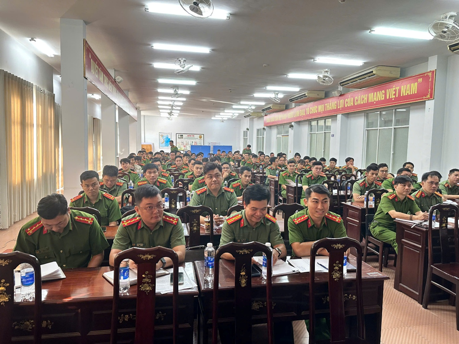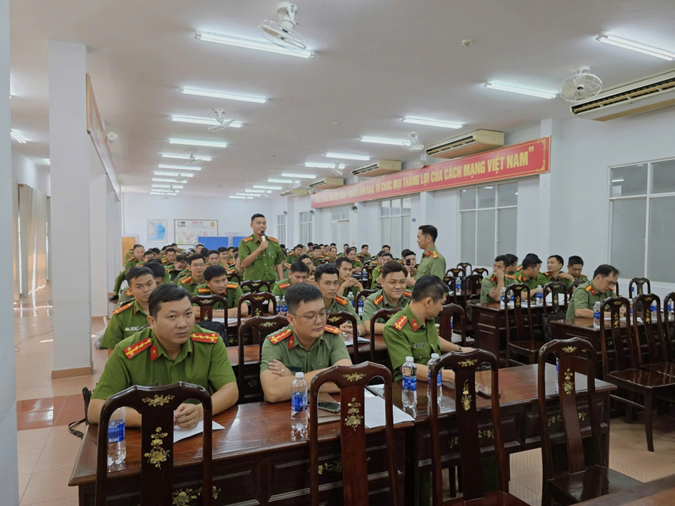 Cán bộ, chiến sĩ tham gia tập huấn trao đổi, thảo luận các vấn đề khó khăn trong lĩnh vực công nghệ thông tin tại Công an cấp cơ sở