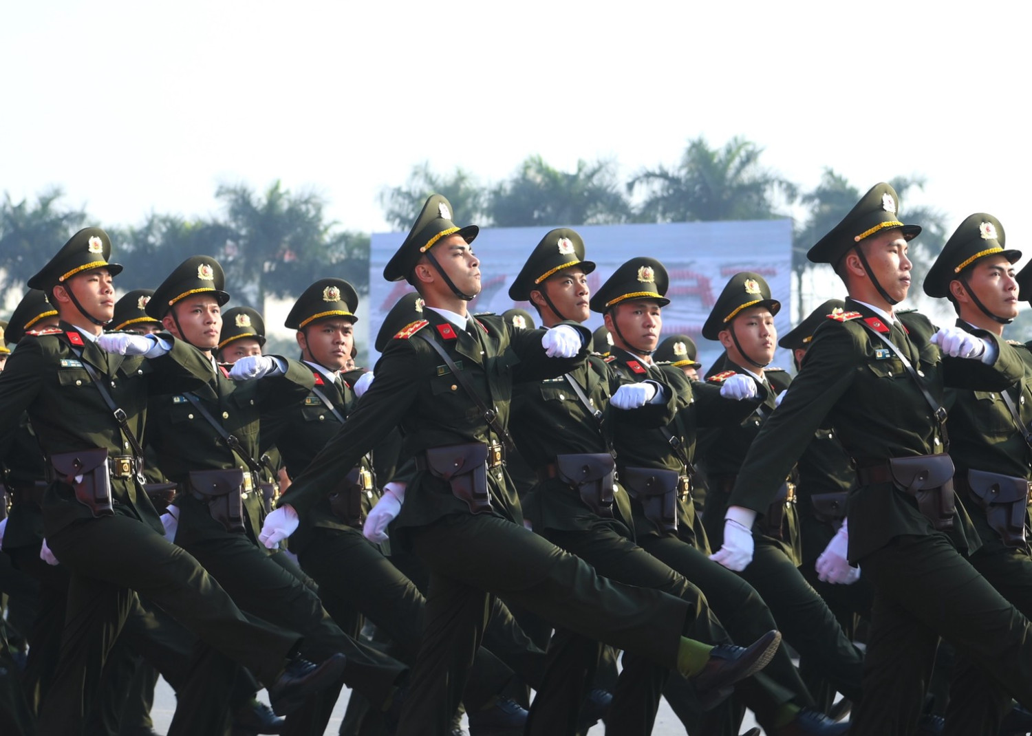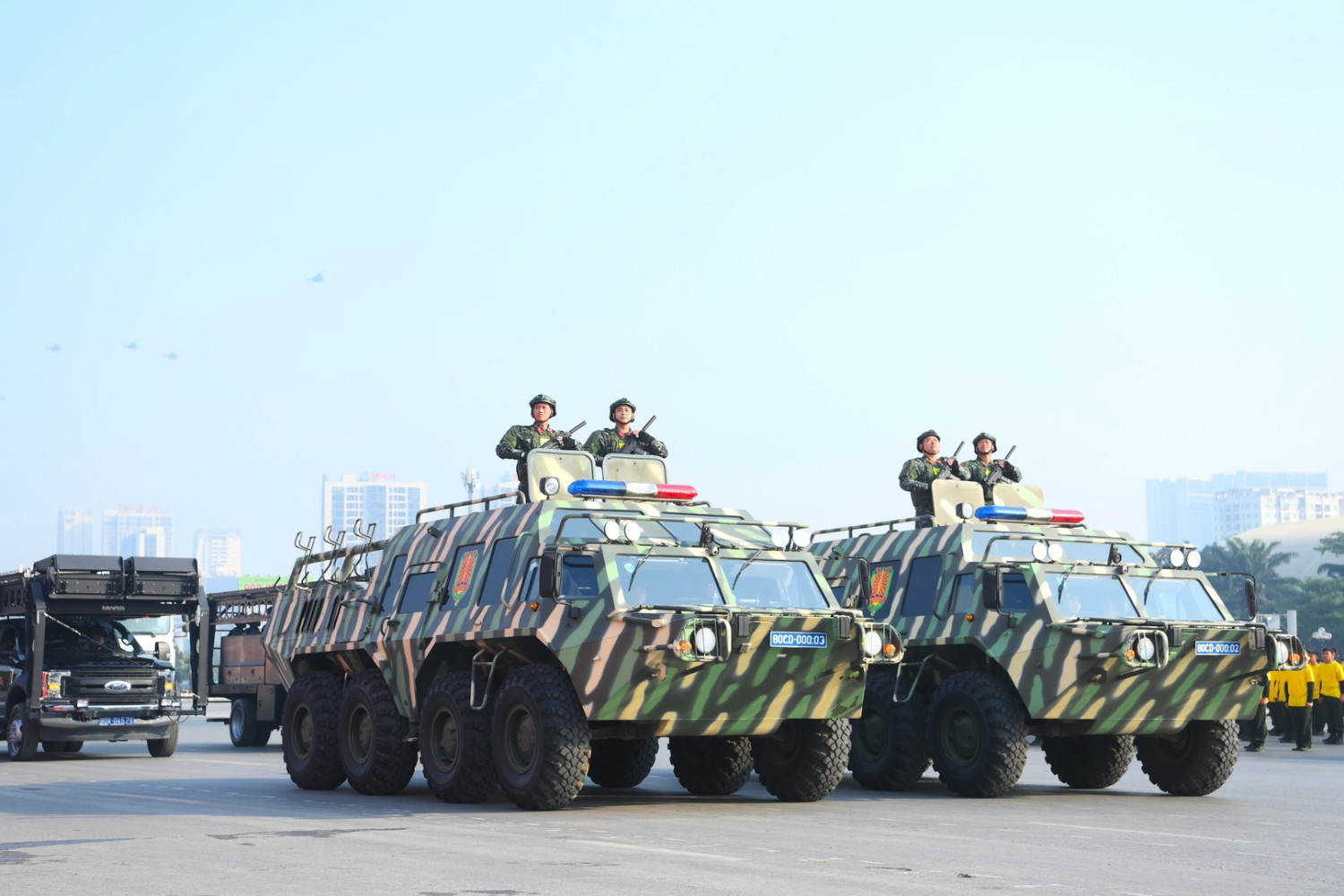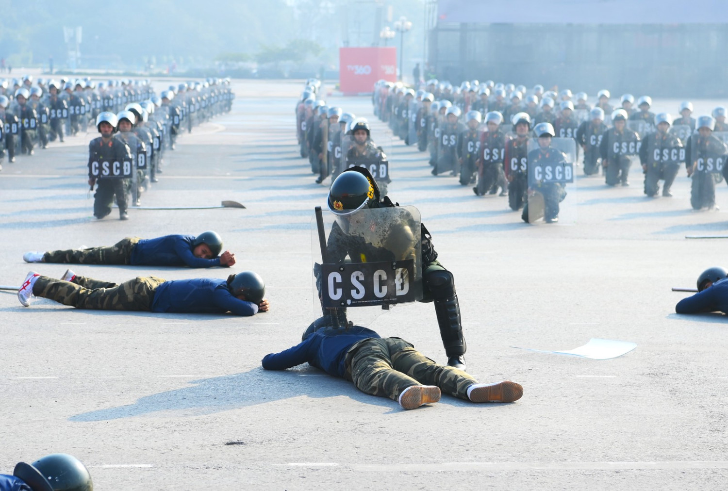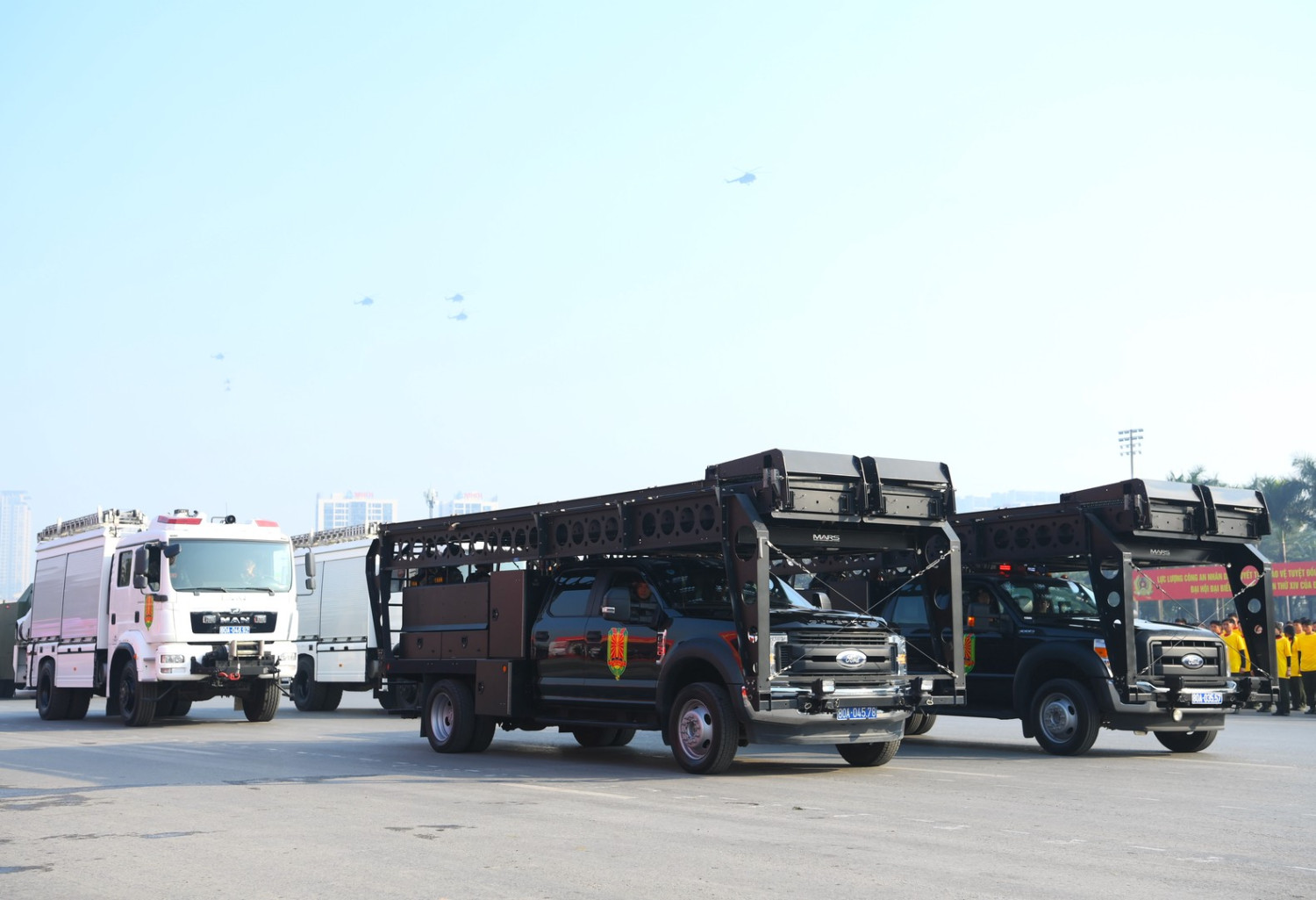 Ngay sau đó là chương trình duyệt đội ngũ, diễu hành phương tiện đặc chủng của Bộ Công an và lực lượng trực thăng thuộc Trung đoàn Không quan 916, Sư đoàn Không quân 371, Quân chủng Phòng không – Không quân – Bộ Quốc phòng; báo cáo kết quả huấn luyện các nội dung thực hiện phương án bảo đảm ANTT với các nội dung đồng diễn Bài Quyền dùi cui, lá chắn, nội dung khí công, công phá, bắn súng ứng dụng…