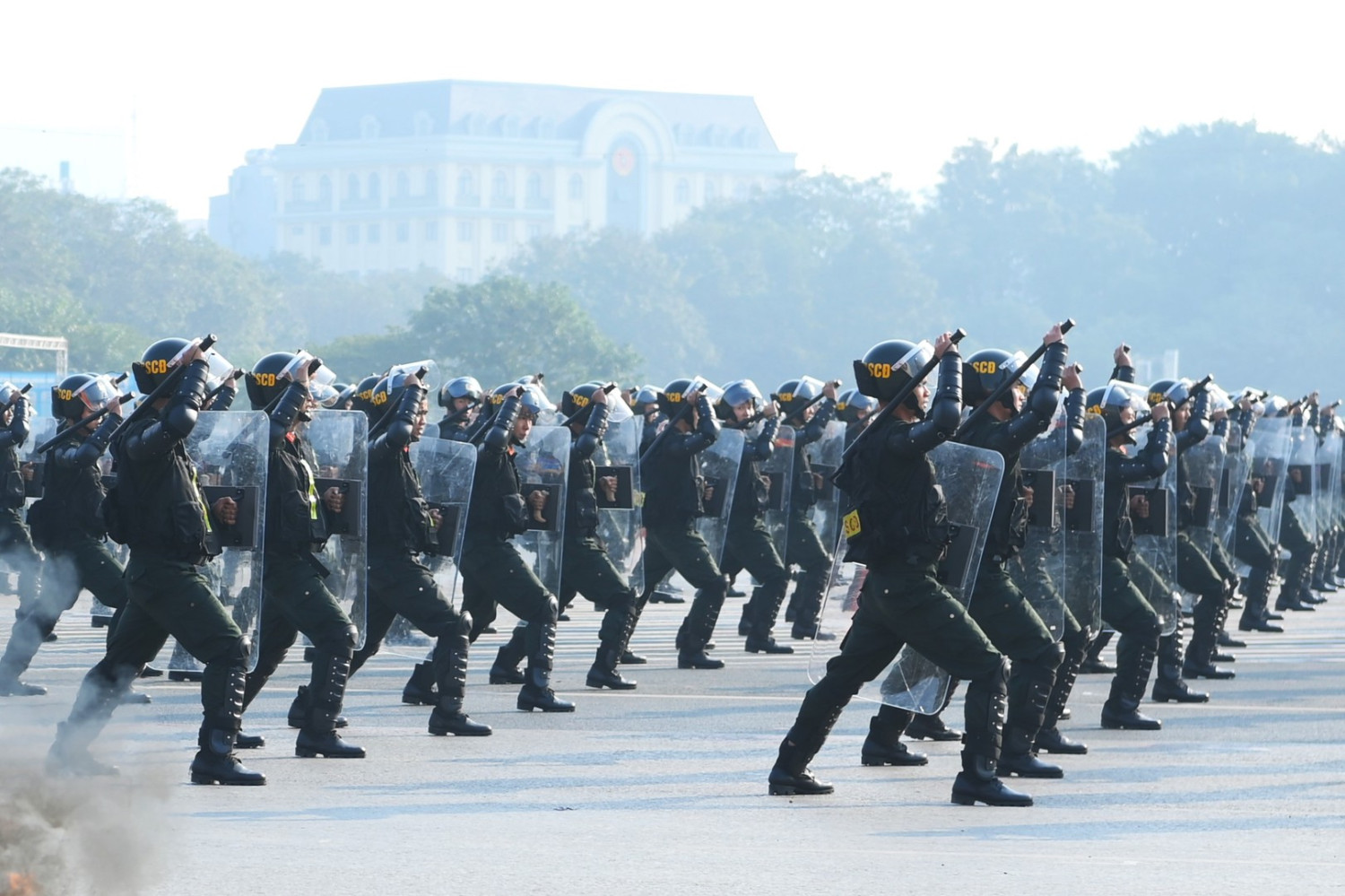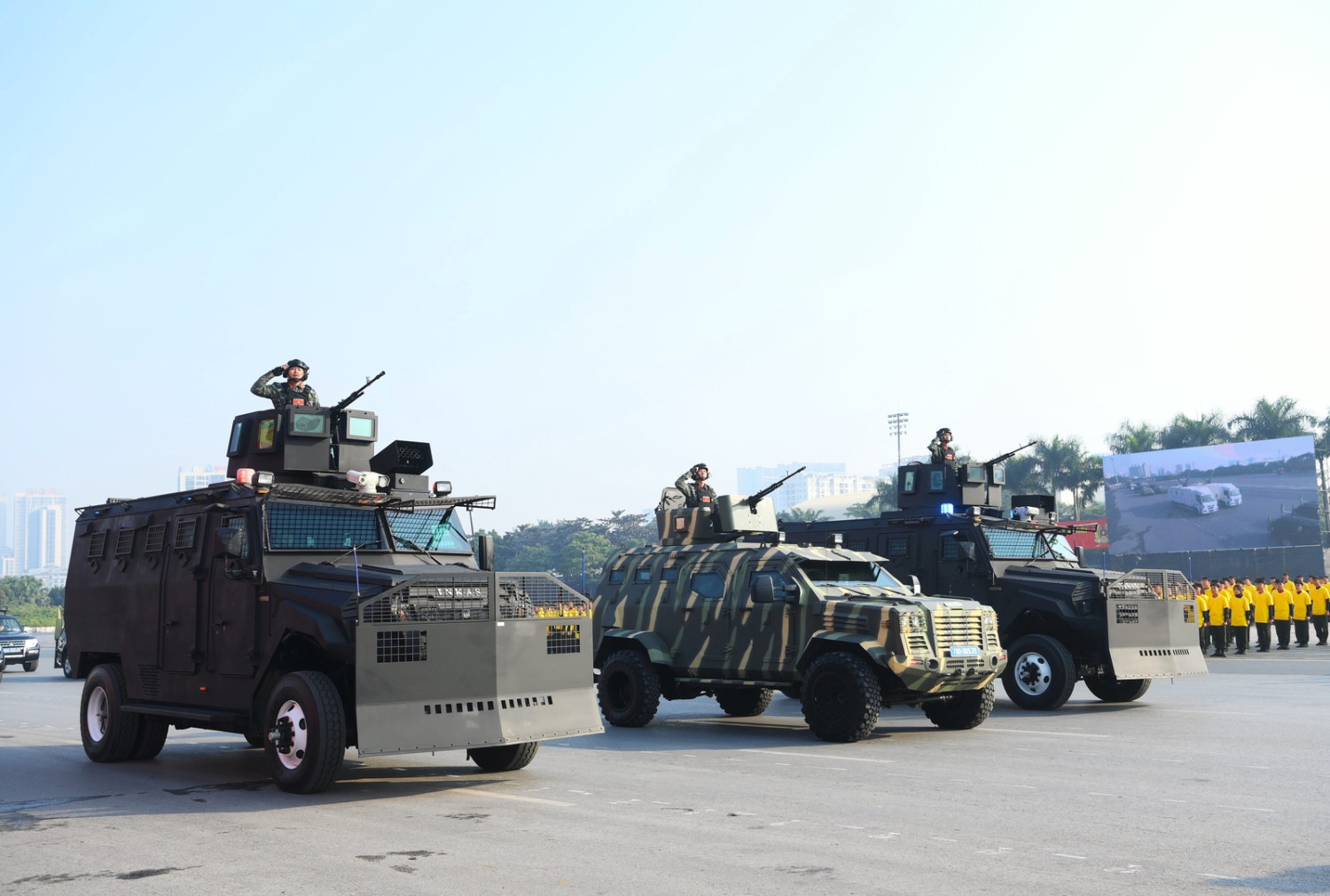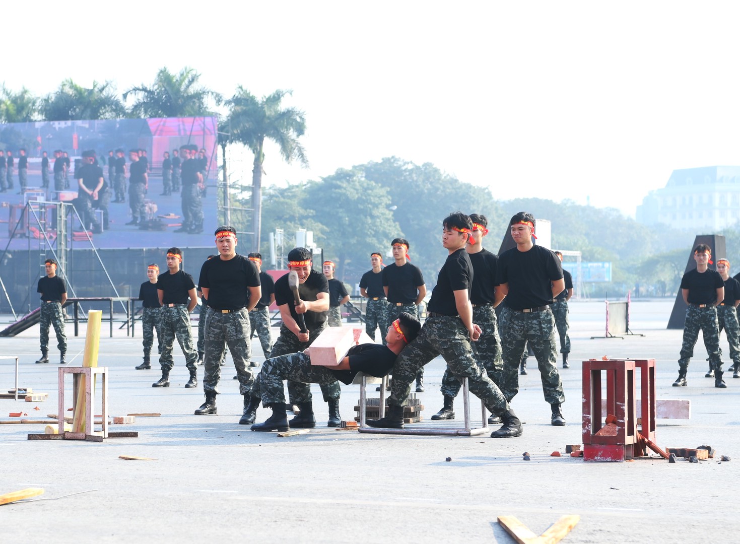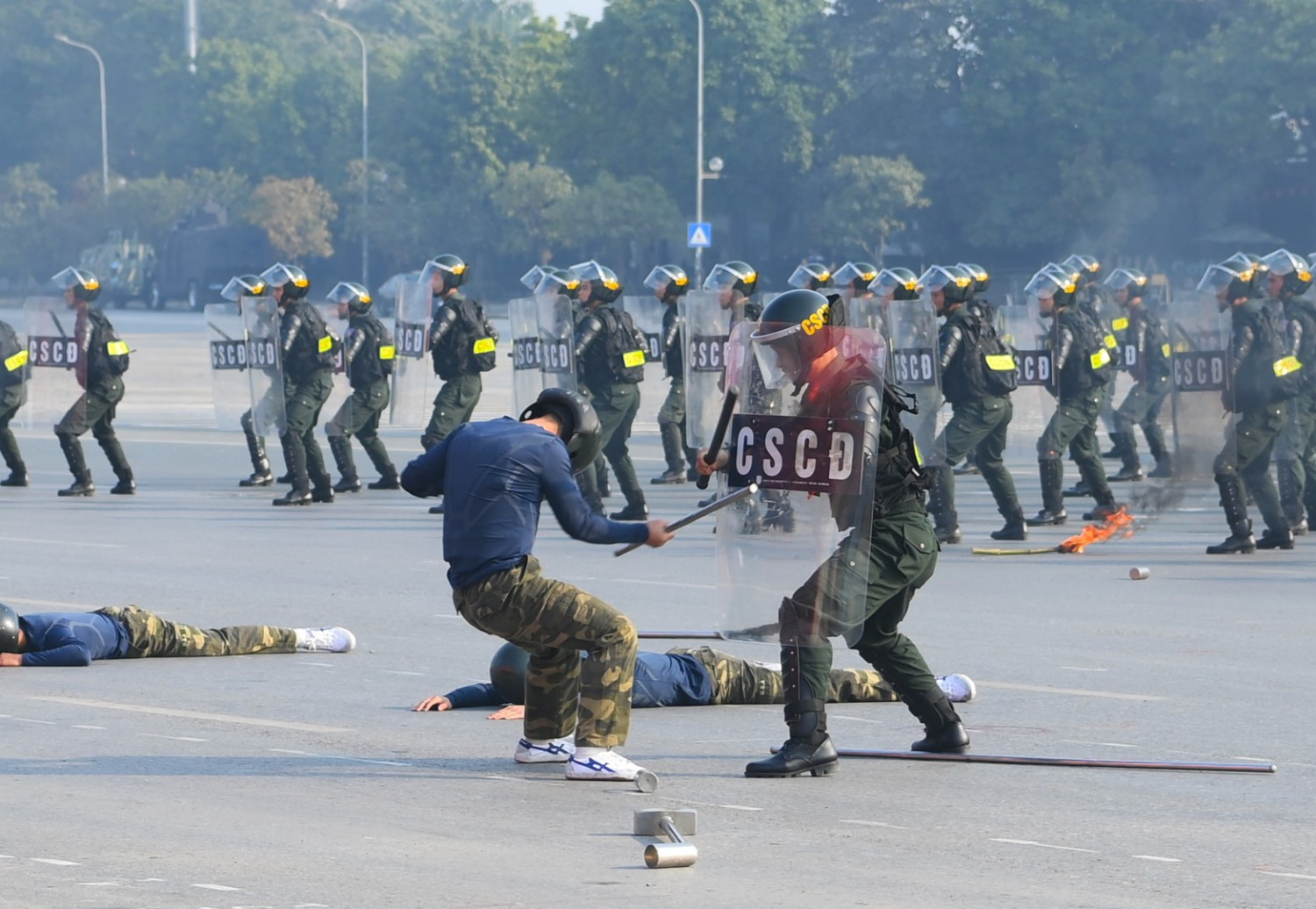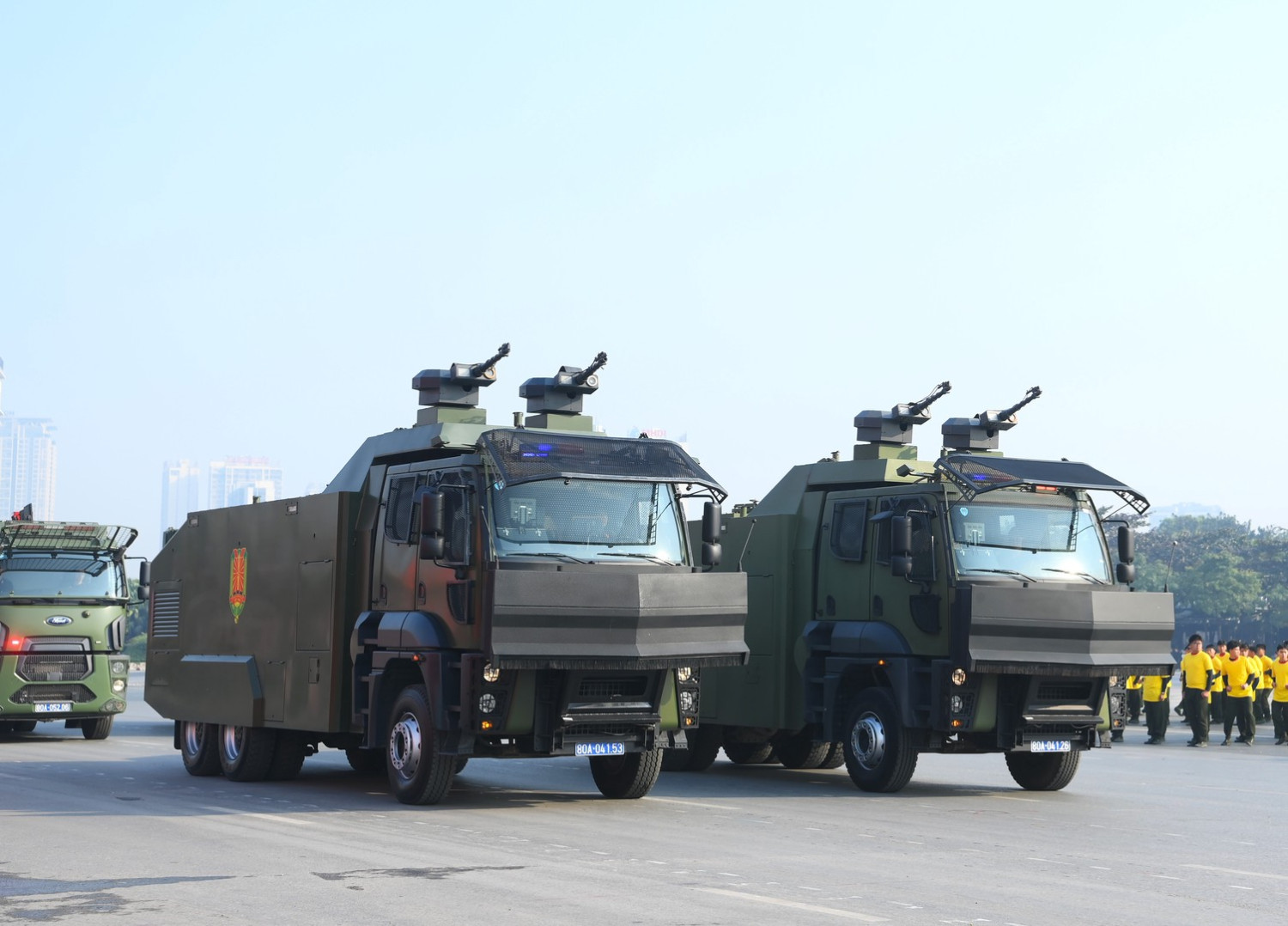 Ngay sau đó là chương trình duyệt đội ngũ, diễu hành phương tiện đặc chủng của Bộ Công an và lực lượng trực thăng thuộc Trung đoàn Không quan 916, Sư đoàn Không quân 371, Quân chủng Phòng không – Không quân – Bộ Quốc phòng; báo cáo kết quả huấn luyện các nội dung thực hiện phương án bảo đảm ANTT với các nội dung đồng diễn Bài Quyền dùi cui, lá chắn, nội dung khí công, công phá, bắn súng ứng dụng…
