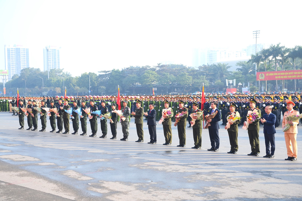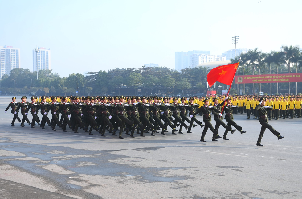 Dự Lễ xuất quân có đại diện lãnh đạo các ban, bộ, ngành Trung ương, Thành ủy, Ủy ban nhân dân thành phố Hà Nội; đại diện lãnh đạo Công an các đơn vị, địa phương cùng gần 5.000 cán bộ, chiến sĩ Công an nhân dân đại diện cho các lực lượng trực tiếp tham gia đảm bảo ANTT Đại hội XIV của Đảng. Nhận thức sâu sắc về ý nghĩa, tầm quan trọng của bảo đảm tuyệt đối ANTT Đại hội đại biểu toàn quốc lần thứ XIV của Đảng, quán triệt, triển khai nghiêm túc chỉ đạo của đồng chí Tổng Bí thư, Thủ tướng Chính phủ, Thường trực Ban Bí thư, Bộ trưởng Bộ Công an, thời gian qua, Tiểu ban ANTT Đại hội XIV của Đảng/Bộ Công an đã quyết liệt chỉ đạo triển khai đồng bộ, toàn diện các giải pháp, biện pháp bảo đảm ANTT Đại hội, với mục tiêu, yêu cầu cao nhất là: Bảo vệ tuyệt đối an ninh, an toàn, không để xảy ra đột xuất, bất ngờ, không để xảy ra sơ xuất dù là nhỏ nhất không chỉ ở nơi diễn ra Đại hội, mà trên phạm vi cả nước.