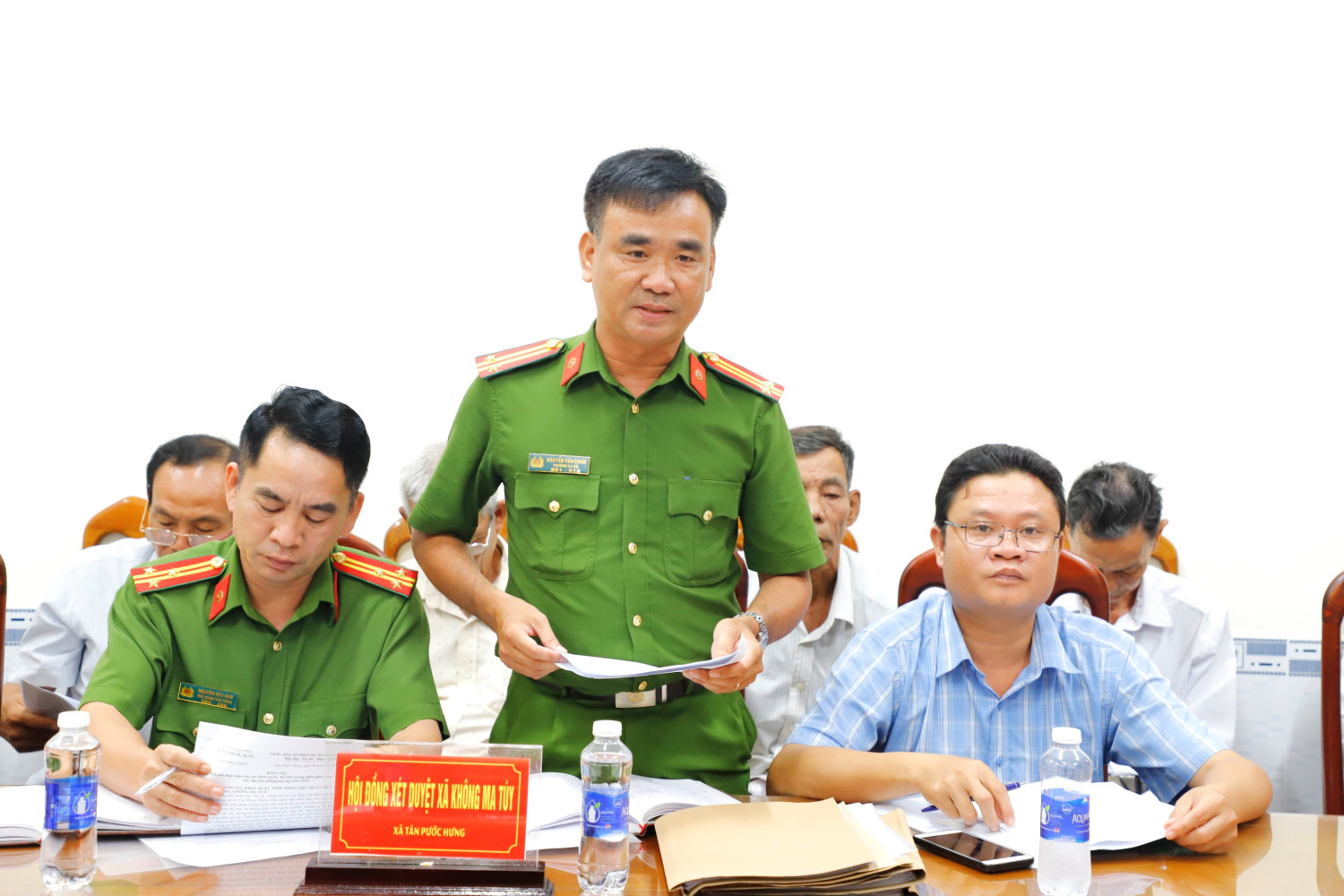 Đại diện Công an xã Tân Phước Hưng báo cáo kết quả thực hiện