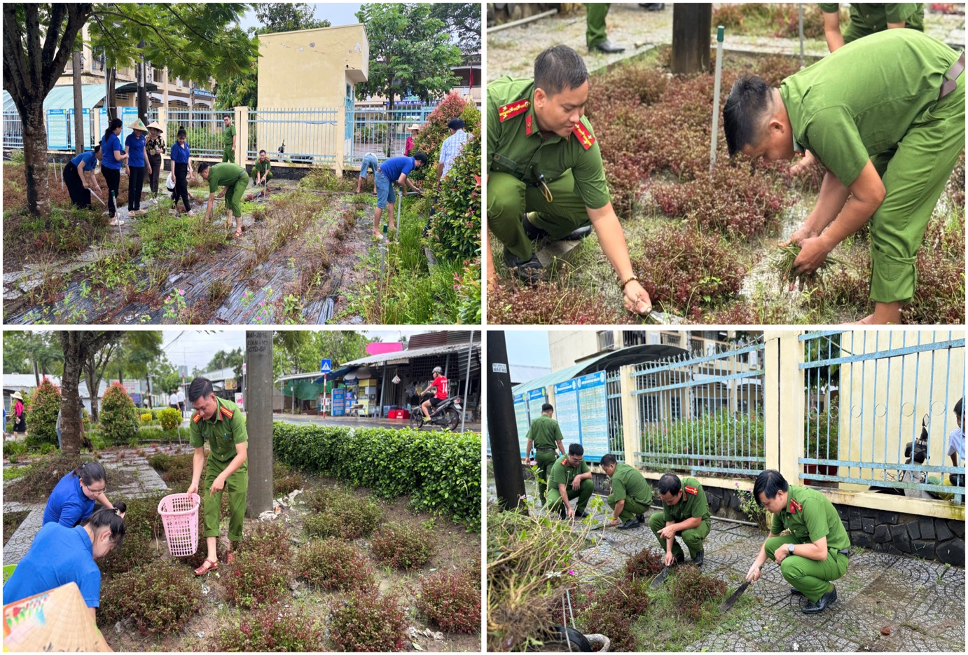 Đoàn viên Công an xã Phong Điền tích cực tham gia dọn vệ sinh môi trường, trồng cây xanh, xóa điểm đen rác thải