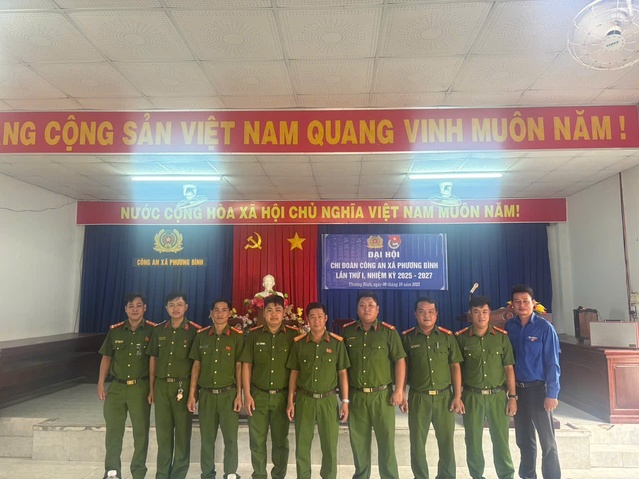 Ban chấp hành Chi đoàn Công an xã Phương Bình cùng khách mời chụp ảnh lưu niệm tại Đại hội Chi đoàn lần thứ I, nhiệm kỳ 2025 – 2027