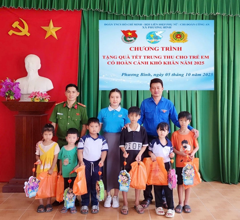 Chi đoàn Công an xã Phương Bình cùng Đoàn TNCS Hồ Chí Minh, Hội Liên hiệp Phụ nữ xã tặng quà Tết Trung thu cho trẻ em có hoàn cảnh khó khăn
