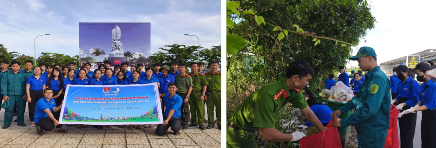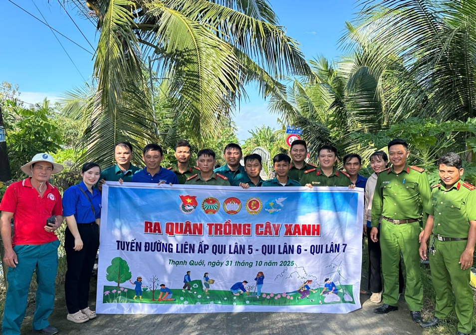 Về môi trường và xây dựng nông thôn mới, Chi đoàn Công an xã Thới An Hội và Chi đoàn Công an xã Tân Long ra quân “Ngày Chủ nhật xanh”, trồng cây xanh, dọn vệ sinh và cải tạo cảnh quan các tuyến đường liên ấp, khu dân cư. Trong khi đó, Chi đoàn Công an xã Lịch Hội Thượng phối hợp với chính quyền, lực lượng ANTT và người dân phát quang bụi rậm, sửa chữa đường nông thôn, lắp đặt biển cảnh báo và cải thiện hệ thống chiếu sáng, góp phần nâng cao chất lượng nông thôn mới xanh, sạch, an toàn.