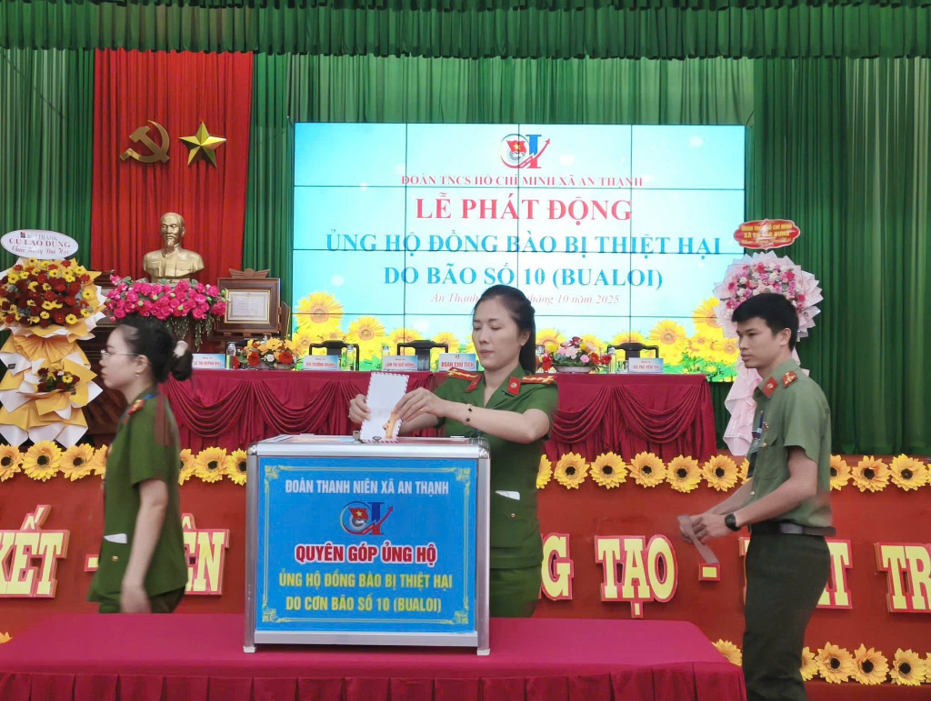 Chi đoàn và Chi hội Công an xã An Thạnh tham gia ủng hộ đồng bào bị thiệt hại do cơn Bão số 10
