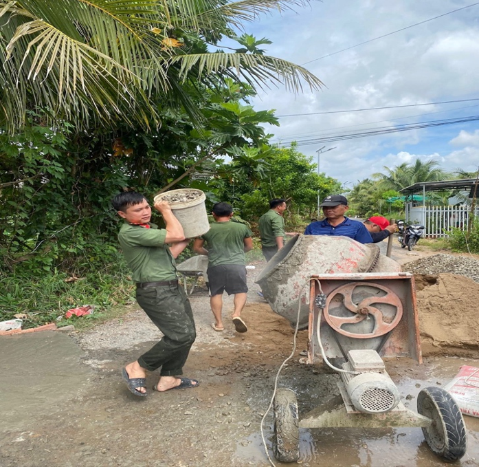Đoàn viên Công an xã Thới An Hội tham gia sửa chữa các tuyến đường bị hư hỏng