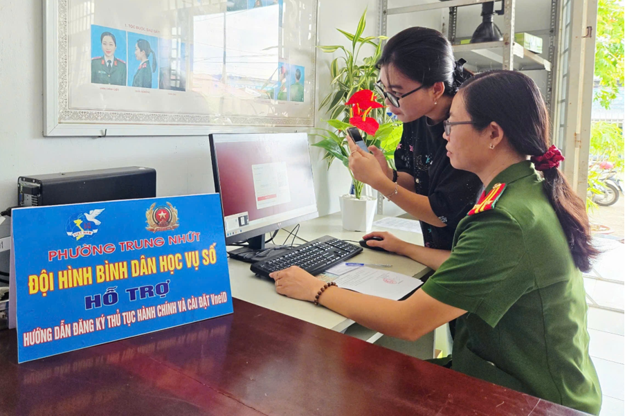 Chi hội phụ nữ Công an phường Trung Nhứt hướng dẫn người dân thực hiện dịch vụ công trực tuyến