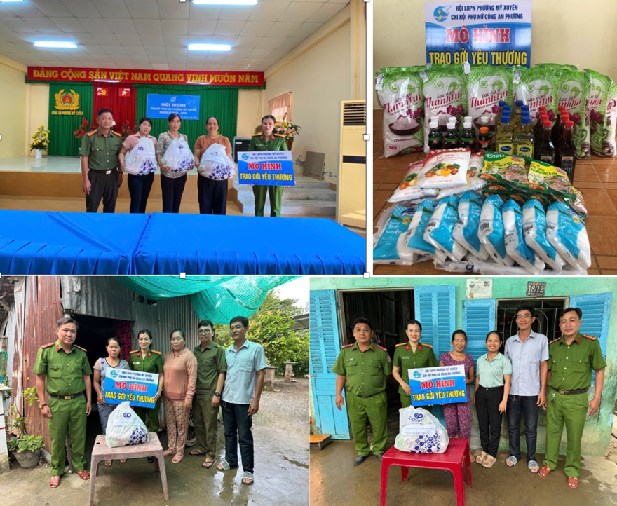 Chi hội Phụ nữ Công an phường Mỹ Xuyên tặng quà cho các hội viên có hoàn cảnh khó khăn.