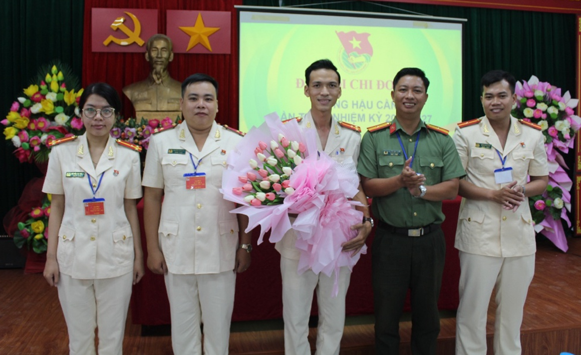Ban Thanh niên Công an thành phố tặng hoa Ban Chấp hành Chi đoàn Phòng Hậu cần nhiệm kỳ 2025 – 2027