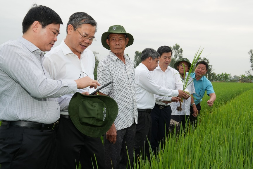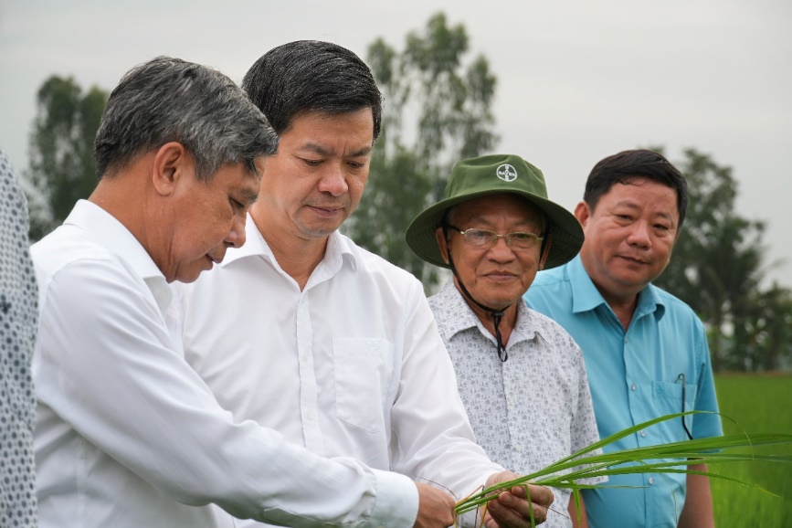 Ảnh: Lãnh đạo thành phố thăm cánh đồng của ông Nguyễn Thanh Bình