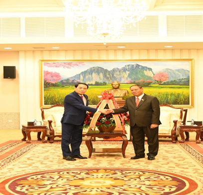 Thứ trưởng Lê Quốc Hùng chúc mừng Đại tướng Vi-lay Lạ-khăm-phong