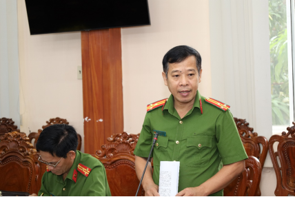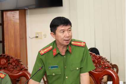 Đại tá Nguyễn Thanh Tràng, Thành ủy viên, Phó Bí thư Đảng ủy, Phó Giám đốc Công an thành phố Cần Thơ, phát biểu chỉ đạo tại buổi làm việc