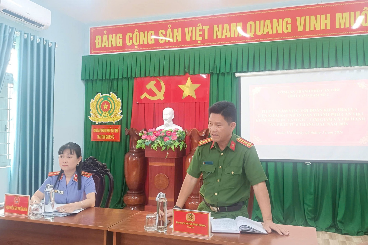 Đồng chí Mã Quế Khanh, Phó Trưởng phòng 8, Viện kiểm sát nhân dân thành phố Cần Thơ làm Trưởng đoàn; tham gia cùng đoàn có các đồng chí là cán bộ Phòng 8 và đại diện Phòng Cảnh sát thi hành án hình sự và hỗ trợ tư pháp Công an thành phố. Về phía đơn vị có đồng chí Thượng tá Huỳnh Minh Quang, Giám thị; các đồng chí Phó Giám thị, Chỉ huy các Đội nghiệp vụ và các cán bộ Trại tạm giam số 2.