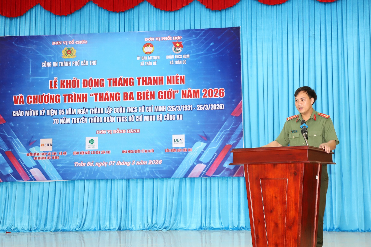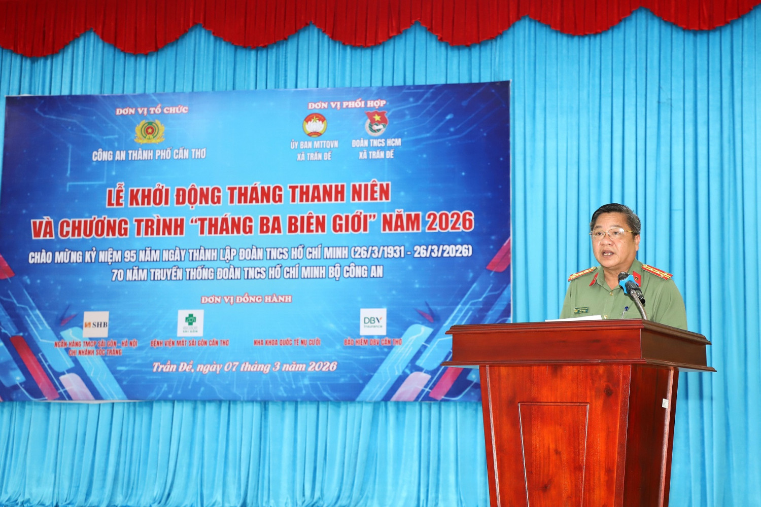 Trong không khí thi đua sôi nổi của tuổi trẻ cả nước nói chung và tuổi trẻ Công an nhân dân nói riêng đang thiết thực lập thành tích chào mừng kỷ niệm 78 năm Ngày Chủ tịch Hồ Chí Minh nêu Sáu điều dạy Công an nhân dân (11/3/1948 - 11/3/2026), 95 năm Ngày thành lập Đoàn Thanh niên Cộng sản Hồ Chí Minh (26/3/1931 - 26/3/2026), 70 năm truyền thống Đoàn Thanh niên Bộ Công an (1956 - 2026) và đặc biệt là đẩy mạnh các hoạt động thi đua hướng tới bầu cử đại biểu Quốc hội khóa XVI và đại biểu Hội đồng nhân dân các cấp, nhiệm kỳ 2026 - 2031. Được sự đồng ý của Đảng ủy, Ban Giám đốc Công an thành phố Cần Thơ và Thường trực Đảng ủy xã Trần Đề, ngày 07/3, Ban Thanh niên Công an thành phố phối hợp Ban Chấp hành Đoàn Thanh niên Cộng sản Hồ Chí Minh xã Trần Đề tổ chức Lễ khởi động Tháng Thanh niên gắn với Chương trình “Tháng Ba biên giới” năm 2026.