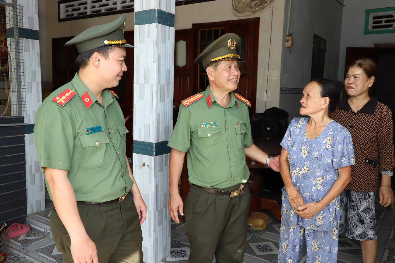 Đồng chí Thượng tá Lê Bá Răng, Phó Trưởng Phòng Công tác chính trị, Công an thành phố Cần Thơ đại diện đoàn công tác thăm hỏi, động viên bà Trần Thị Bạch