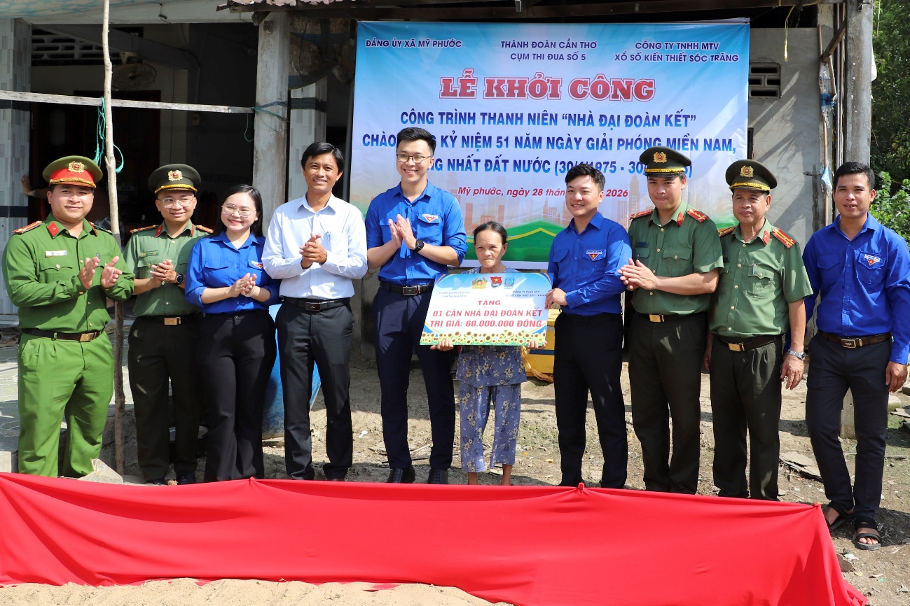 Trong khuôn khổ chương trình, với sự đồng hành, tài trợ của Công ty Xổ số Kiến thiết thành phố Cần Thơ, Cụm thi đua số 5 đã triển khai “Công trình thanh niên”, trao tặng 01 căn nhà Đại đoàn kết trị giá 60 triệu đồng cho hộ bà Trần Thị Bạch (ấp Phước Thọ A, xã Mỹ Phước) - gia đình có hoàn cảnh khó khăn, bức xúc về nhà ở. Việc hỗ trợ xây dựng nhà ở không chỉ góp phần giúp gia đình ổn định cuộc sống mà còn thể hiện tinh thần tương thân tương ái, trách nhiệm xã hội của các đơn vị trong cụm thi đua.