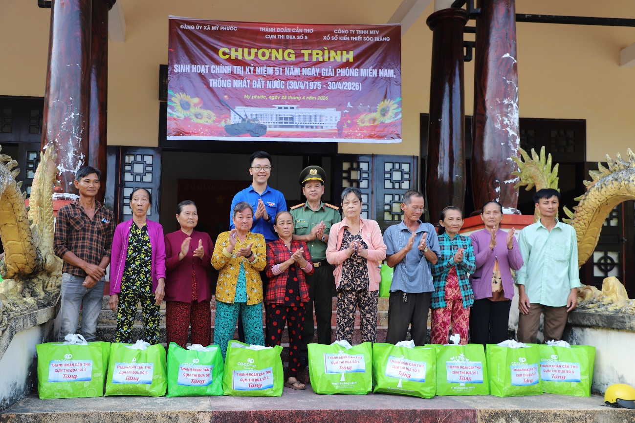 Ngày 28/4/2026, tại xã Mỹ Phước (huyện Mỹ Tú, tỉnh Sóc Trăng), Ban Thanh niên Công an TP Cần Thơ, với vai trò Cụm trưởng Cụm thi đua số 5 trực thuộc Thành Đoàn Cần Thơ, đã chủ trì tổ chức hành trình sinh hoạt chính trị tại xã Mỹ Phước, huyện Mỹ Tú, tỉnh Sóc Trăng, gắn với triển khai “Công trình thanh niên” và các phần việc thanh niên hướng về Nhân dân.