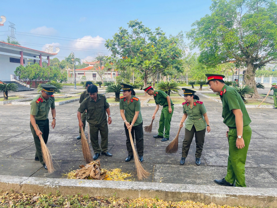 Trong không khí trang nghiêm đoàn viên, thanh niên 02 đơn vị đã thành kính dâng hương, bày tỏ lòng tri ân sâu sắc trước các anh hùng liệt sĩ. Ngay sau lễ viếng, với tinh thần xung kích và tình nguyện, lực lượng đã đồng loạt ra quân tổng vệ sinh, phát quang và dọp dẹp vệ sinh cảnh quan khuôn viên khu di tích. Những phần việc thiết thực này không chỉ mang lại diện mạo khang trang cho công trình lịch sử, mà còn là cách để tuổi trẻ Công an thể hiện đạo lý “Uống nước nhớ nguồn”, biến lòng tự hào dân tộc thành những hành động cống hiến cụ thể vì cộng đồng.