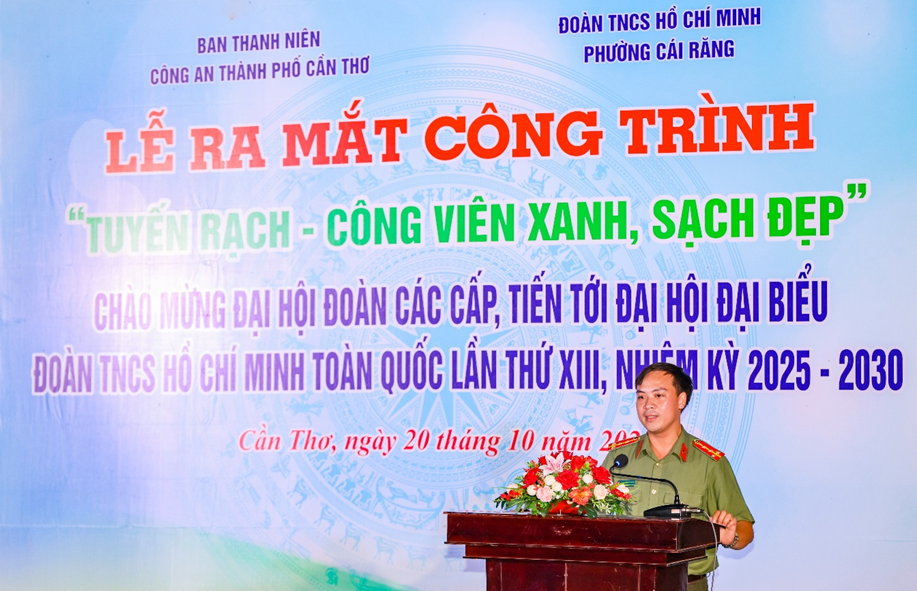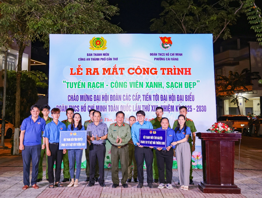 Tối ngày 20/10, Ban Thanh niên Công an TP Cần Thơ phối hợp với Đoàn TNCS Hồ Chí Minh phường Cái Răng tổ chức Lễ ra mắt công trình thanh niên “Tuyến rạch - Công viên xanh, sạch, đẹp” nhằm thiết thực lập thành tích chào mừng Đại hội Đoàn TNCS Hồ Chí Minh các cấp trong CAND, tiến tới Đại hội đại biểu Đoàn TNCS Hồ Chí Minh toàn quốc lần thứ XIII, nhiệm kỳ 2025 - 2030.