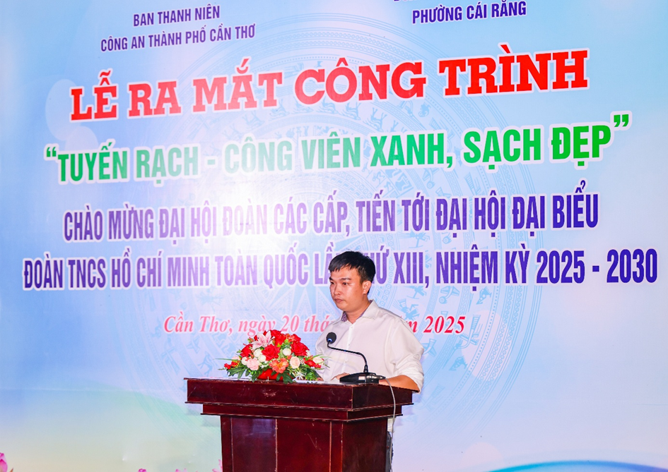Trong phần cuối chương trình, các đại biểu thực hiện nghi thức chính thức ra mắt công trình thanh niên “Tuyến rạch - Công viên xanh, sạch, đẹp” đánh dấu sự hoàn thành của một công trình ý nghĩa, thể hiện tinh thần đoàn kết, trách nhiệm và quyết tâm chung tay xây dựng môi trường sống xanh, sạch, đẹp giữa lực lượng Công an, chính quyền và Nhân dân địa phương. Công trình là món quà ý nghĩa của tuổi trẻ Công an thành phố Cần Thơ và đoàn viên phường Cái Răng chào mừng Đại hội Đoàn các cấp, thể hiện tinh thần tiên phong, xung kích, trách nhiệm của thế hệ trẻ trong xây dựng đô thị văn minh, lan tỏa thông điệp “Sống xanh - nghĩ xanh - hành động xanh” vì một Cần Thơ xanh, sạch, đẹp, an toàn và đáng sống./.