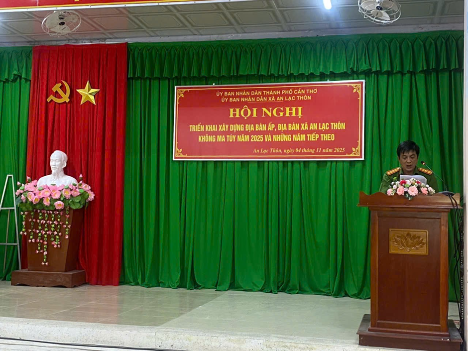Ngày 04/11/2025, Công an xã An Lạc Thôn tham mưu Ủy ban nhân dân xã tổ chức Hội nghị triển khai Kế hoạch xây dựng địa bàn ấp, địa bàn xã không ma túy năm 2025 và những năm tiếp theo, phấn đấu đến năm 2028 hoàn thành các mục tiêu đề ra.
