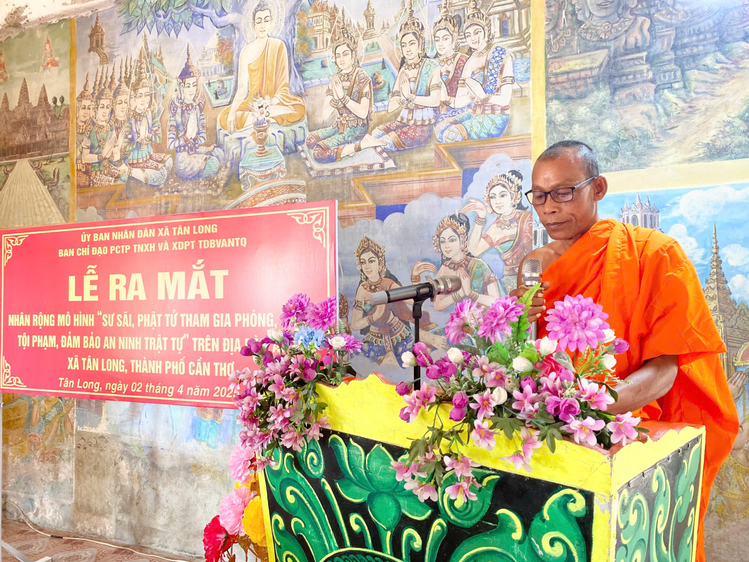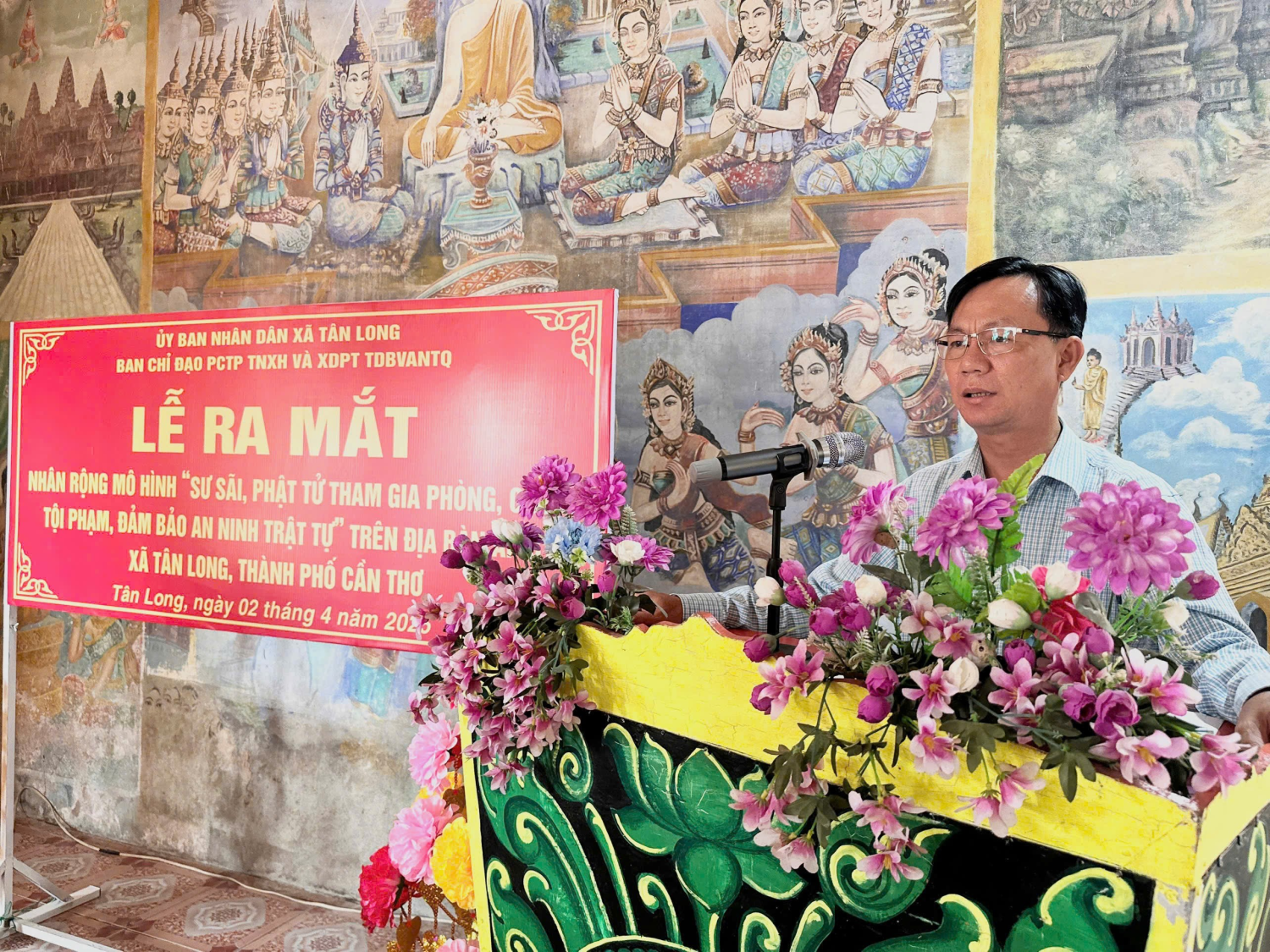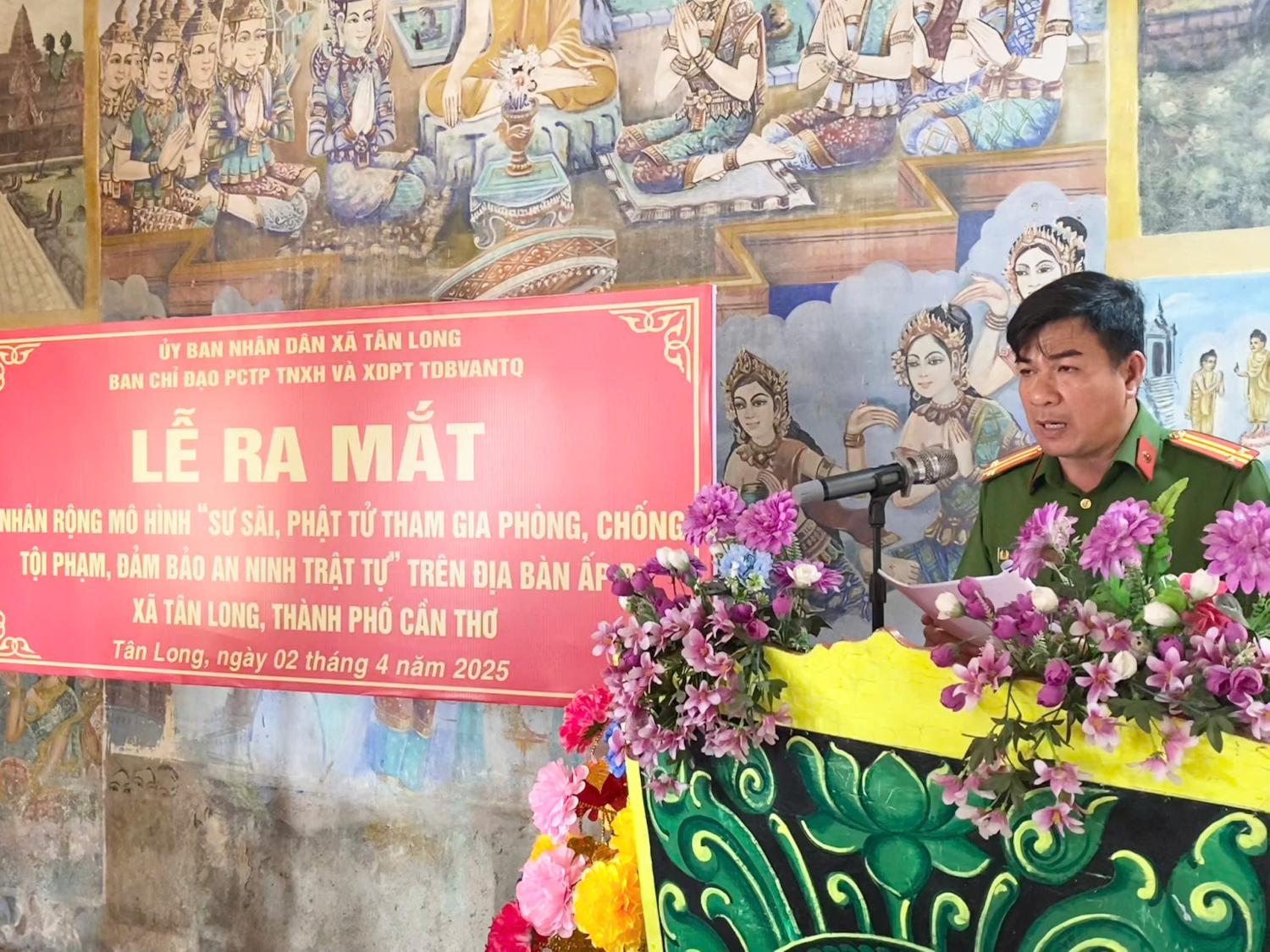 Mô hình do Ban Chỉ đạo phòng, chống tội phạm, tệ nạn xã hội và xây dựng phong trào toàn dân bảo vệ an ninh Tổ quốc xã Tân Longchủ trì,giaoCông an xã Tân Long tham mưu thực hiện. Qua đó, Công an xã Tân Long đã phối hợp với Đội Hướng dẫn công tác xây dựng phong trào bảo vệ an ninh Tổ quốc - Phòng Tham mưu, Công an thành phố Cần Thơ nghiên cứu, xây dựng và hoàn thiện thủ tục, hồ sơ để triển khai thực hiện, nhằm phát huy vai trò của chức sắc, chức việc, sư sãi và Phật tử trong công tác giữ gìn an ninh trật tự tại cơ sở.