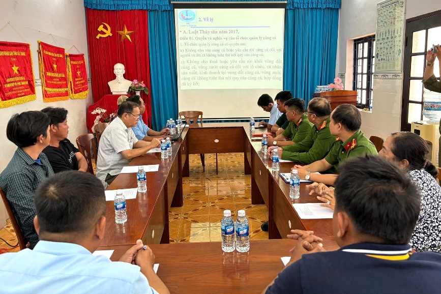 Công an xã đóng góp tích cực trong công tác phổ biến pháp luật, vận động bà con ngư dân nỗ lực bám biển, khai thác hải sản đúng quy định nhằm chung sức tháo gỡ “thẻ vàng” IUU (chống khai thác hải sản bất hợp pháp, không báo cáo và không theo quy định)