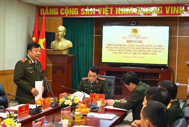 Thiếu tướng Đỗ Triệu Phong, Cục trưởng Cục Truyền thông CAND phát biểu tại buổi làm việc