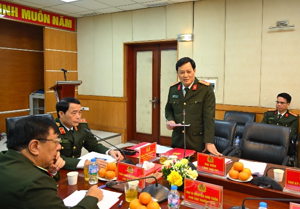 Đại tá Mai Xuân Thảo, Phó Chánh Văn phòng Bộ Công an phát biểu tại buổi làm việc.