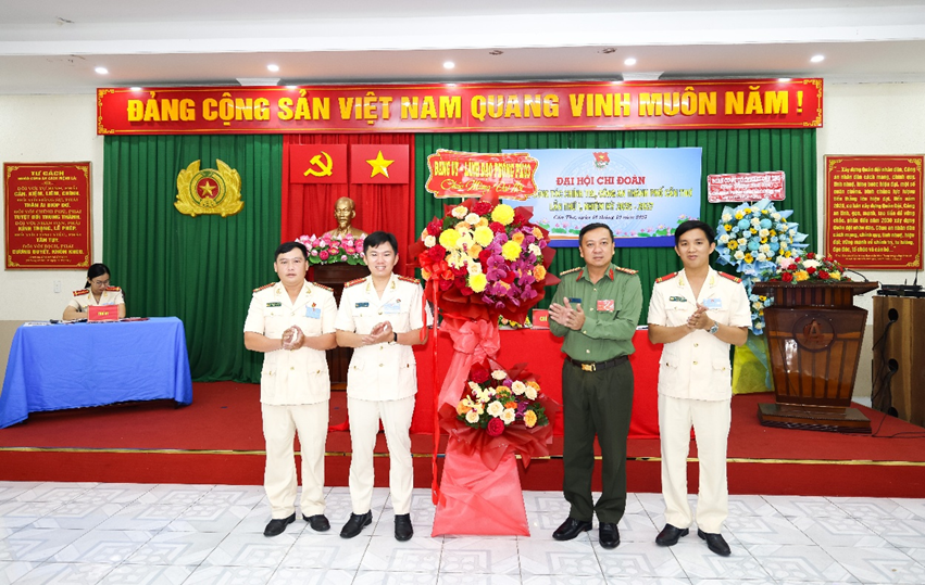 Thượng tá Ngô Tấn Thành, Phó Bí thư Đảng ủy, Phó trưởng phòng Công tác chính trị thay mặt Đảng ủy, lãnh đạo tặng hoa chúc mừng Đại hội
