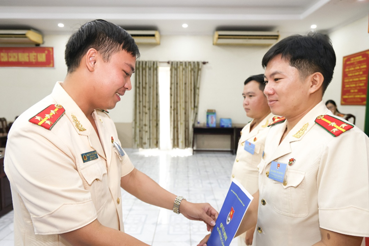 Đại úy Nguyễn Tuấn Ngô, Trưởng Ban Thanh niên Công an thành phố trao các quyết định chỉ định Ban Chấp hành Chi đoàn Phòng Công tác chính trị