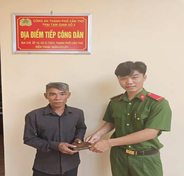 Vào lúc 17 giờ 00 phút ngày 12/02/2026, ngoài giờ thực hiện nhiệm vụ, đồng chí Trần Văn Liền, chiến sĩ nghĩa vụ Trại tạm giam số 3, phát hiện một chiếc ví da bị đánh rơi tại khu vực trước cổng đơn vị.