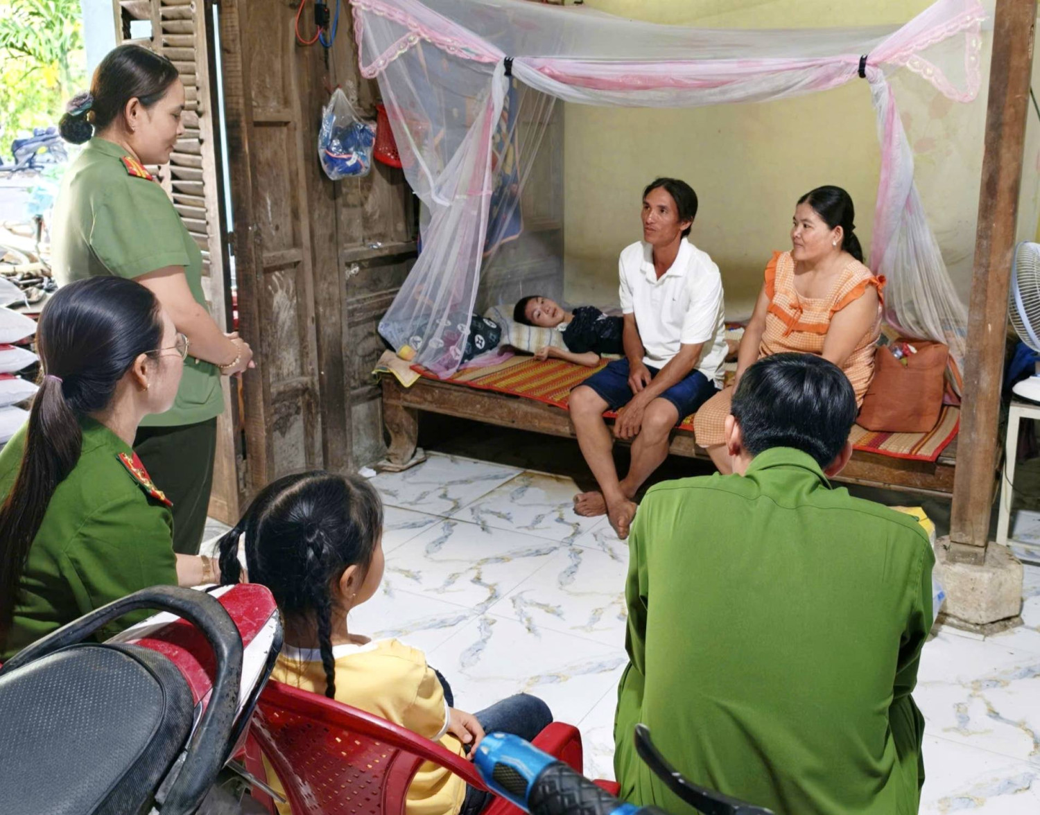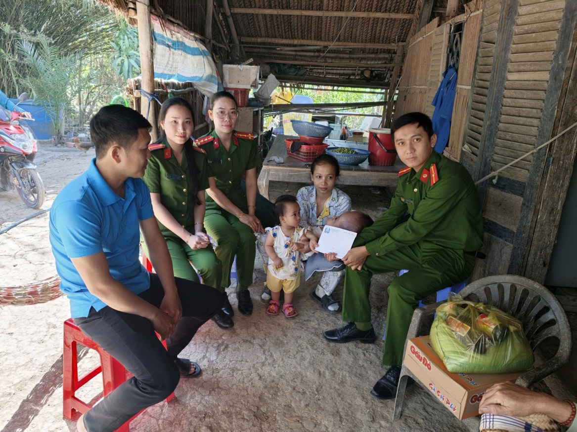 Cụ thể, Đoàn đã thăm gia đình đồng chí Nguyễn Văn Hữu, thành viên lực lượng bảo vệ an ninh, trật tự ở cơ sở, có con bị khuyết tật và một con thuộc diện hỗ trợ của mô hình “Mẹ đỡ đầu”; đồng thời thăm gia đình bà Lê Thị Bé (ấp Cầu Đồn), là hộ có hoàn cảnh đặc biệt khó khăn, đang nuôi dưỡng 02 trẻ em trong mô hình “Mẹ đỡ đầu”.