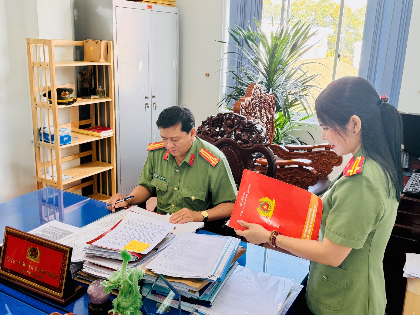 Đồng chí Trung tá Lê Thị Thanh Nga đang tập trung làm việc tại đơn vị