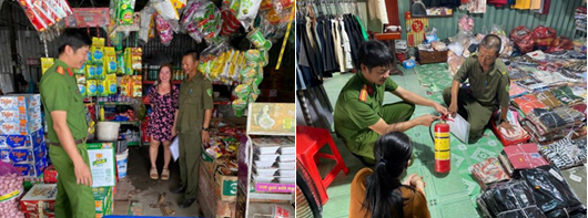 Công an xã Tân Bình kiểm tra, hướng dẫn PCCC và vận động lắp đặt thiết bị truyền tin báo cháy GSafe tại các cơ sở kinh doanh.