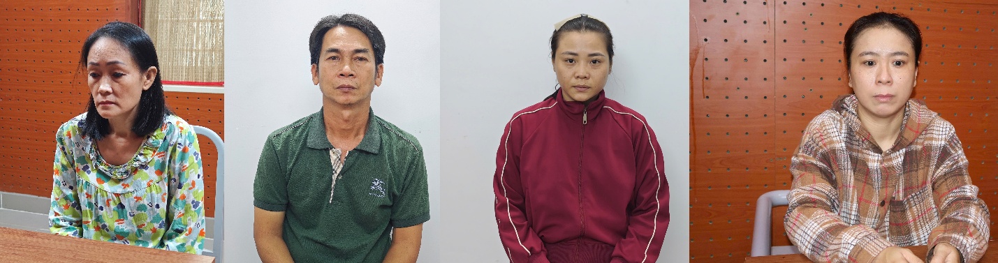 Các đối tượng (theo thứ tự từ trái qua phải): Hồ Thị Thanh Tuyền, Nguyễn Văn Tuấn, Nguyễn Thị Liểu và Nguyễn Thị Diễm