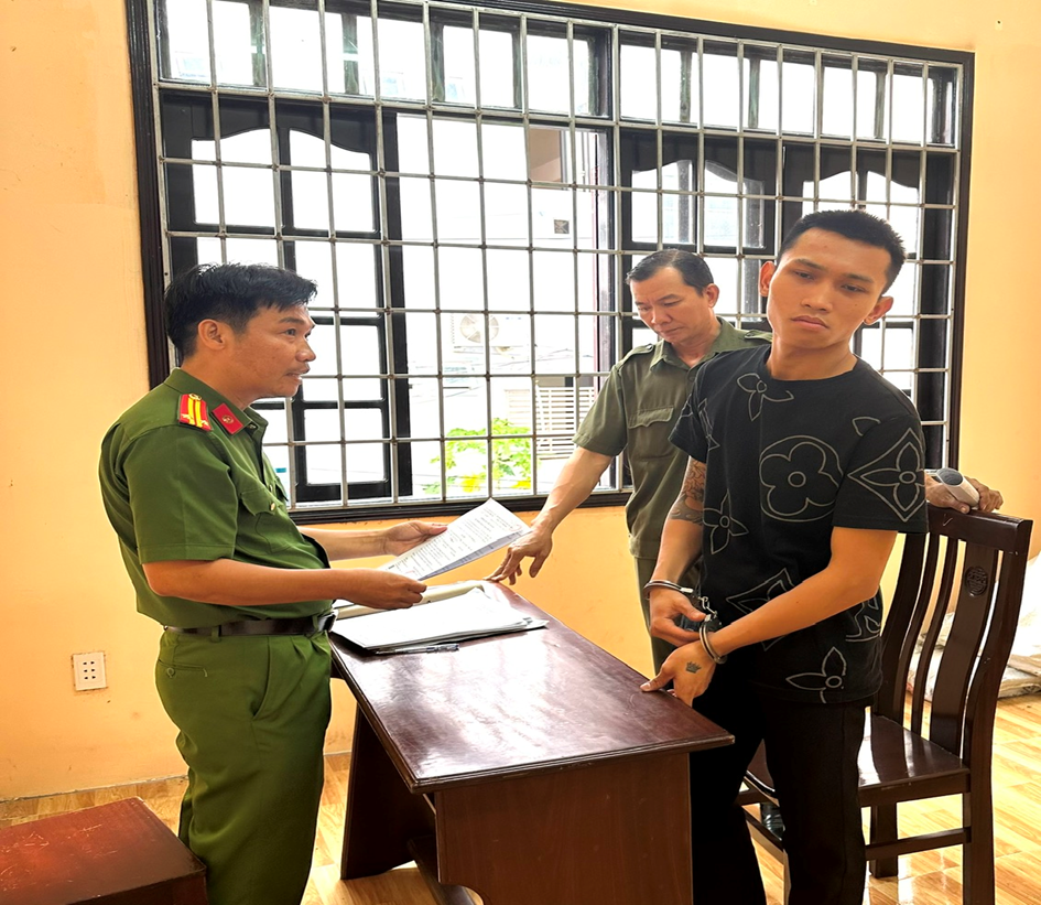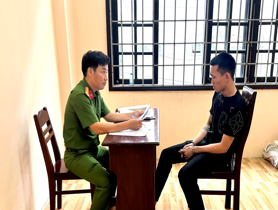 Đối tượng Võ Thành Lộc tại cơ quan Công an.