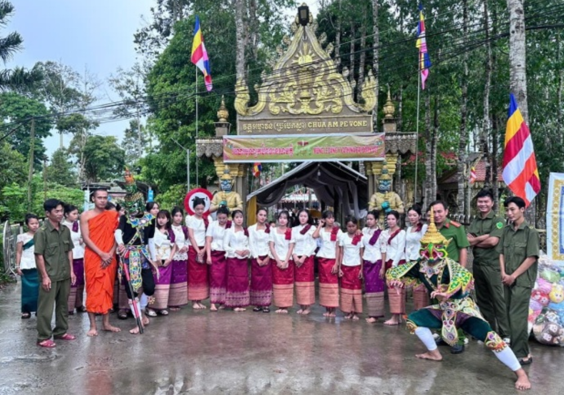Lực lượng Công an xã Trường Thành tại Lễ Dâng y Kathina tại Chùa Ampevone (ấp Định Khánh A)