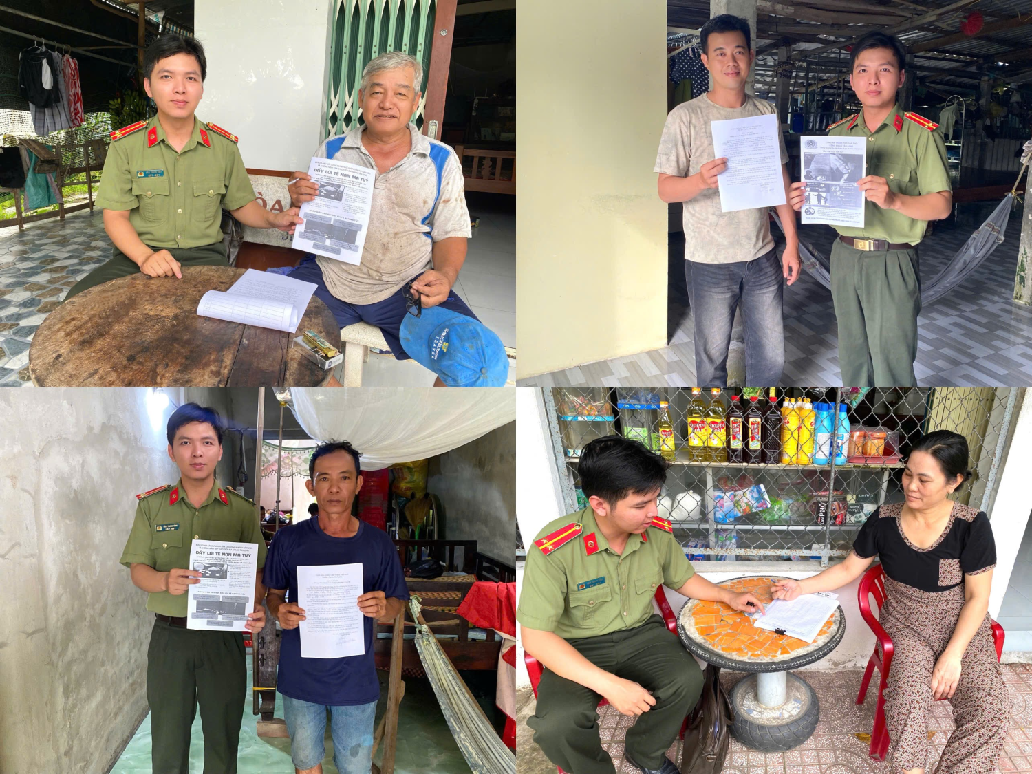 Cán bộ Công an xã Tân Long đến từng hộ dân để tuyên truyền phòng chống ma tuý