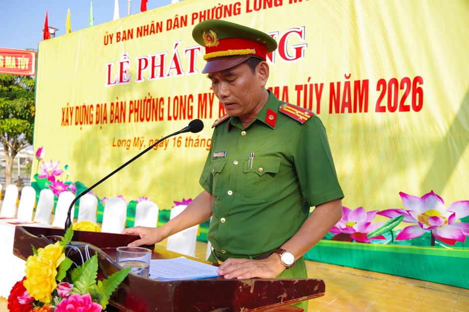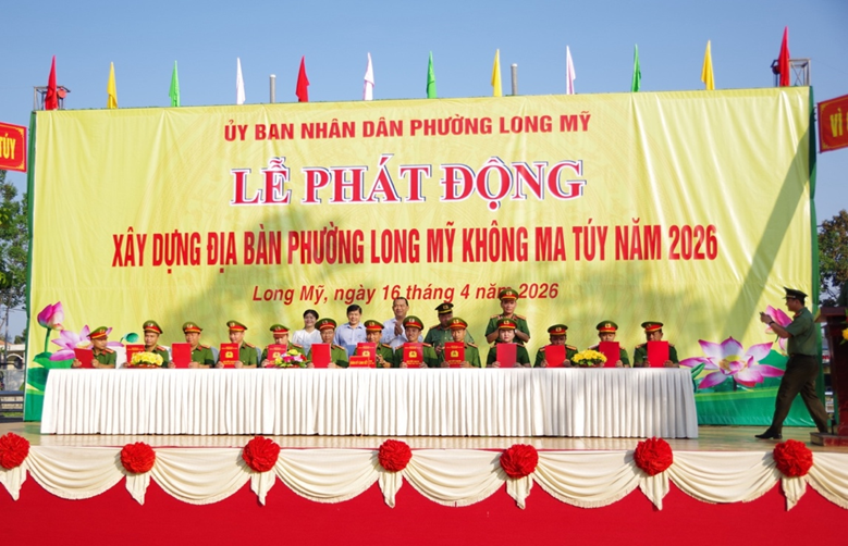 Tại phường Long Mỹ, Ủy ban nhân dân phường tổ chức Lễ phát động xây dựng địa bàn không ma túy năm 2026 với sự tham dự của lãnh đạo Công an thành phố, cấp ủy, chính quyền và đông đảo Nhân dân. Ngay sau lễ phát động, lực lượng Công an phường đã tổ chức ra quân, diễu hành tuyên truyền trên các tuyến đường trọng điểm, tạo khí thế sôi nổi, lan tỏa mạnh mẽ thông điệp “nói không với ma túy”.