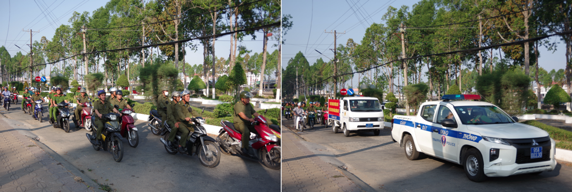 Công an xã Tân Bình phối hợp lực lượng Dân quân, lực lượng tham gia bảo vệ an ninh, trật tự ở cơ sở và các ban, ngành, đoàn thể tổ chức diễu hành tuyên truyền